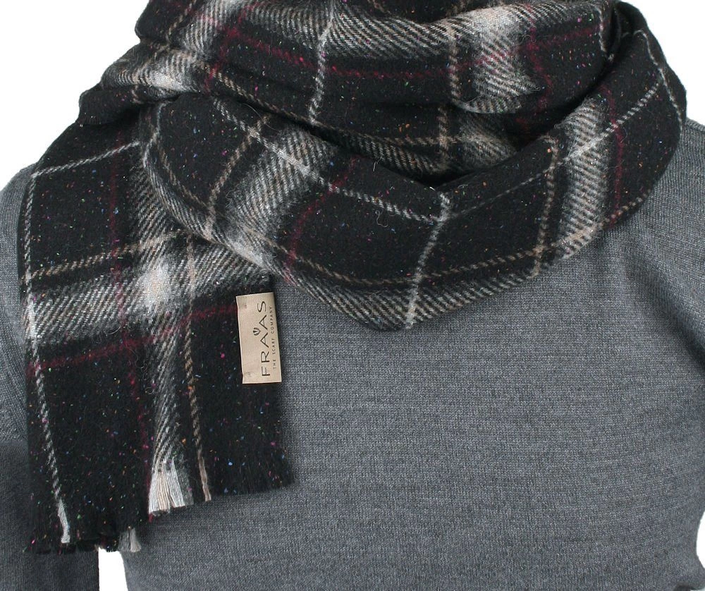 Zimowy szalik znanej niemieckiej firmy V.Fraas istniejącej na rynku już prawie 130 lat. Szaliki nie tylko chronią szyję przed zimnem, są też doskonałym urozmaiceniem męskiej garderoby. Zachowane w stonowanej kolorystyce. Pasują zarówno do eleganckiego, jak i typowo miejskiego, luźnego stroju. Oprócz bawełny, szalik posiada domieszkę jedwabiu – jednej z najbardziej delikatnych, naturalnych tkanin. Wymiary szalika (w cm) – długość (z frędzlami): ok. 194 / szerokość: ok. 37. Materiał: bawełna (40%), jedwab (16%), wiskoza (16%), inne włókna (28%).