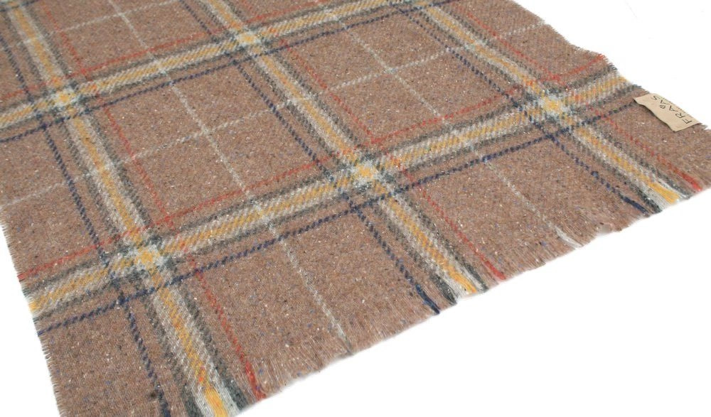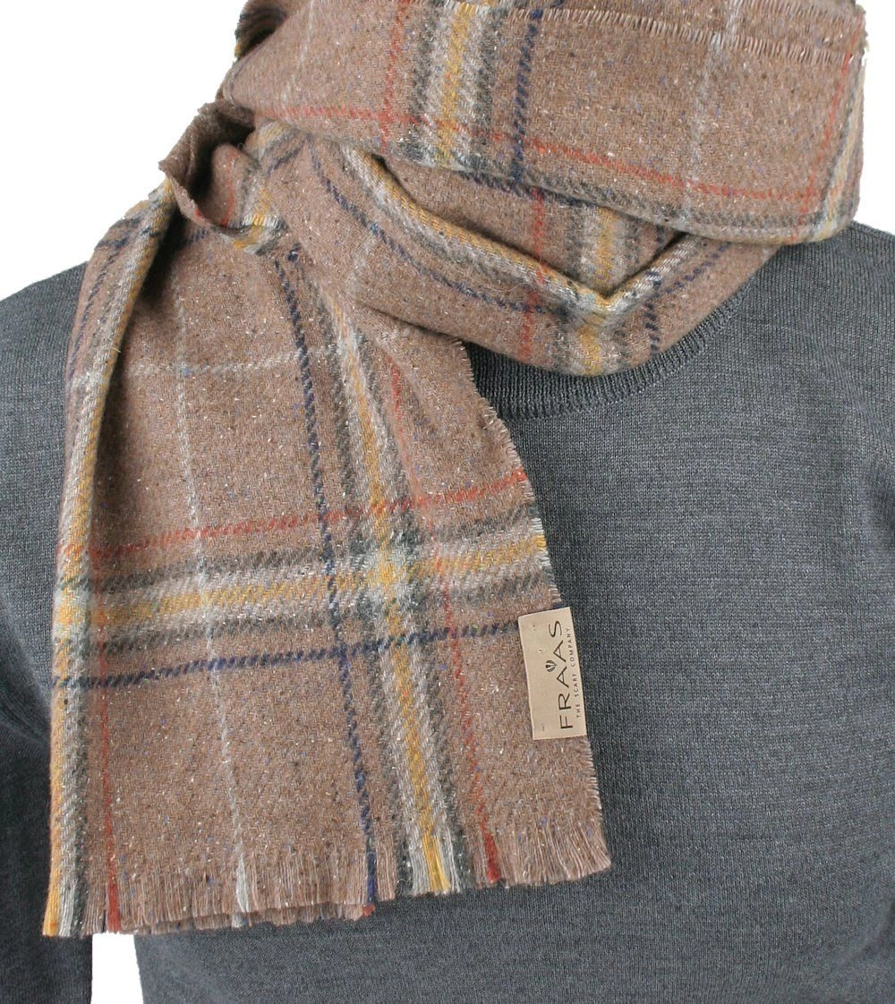 Męski Szalik z Wełną i Jedwabiem - V. Fraas - Ciemny Beż, Krata