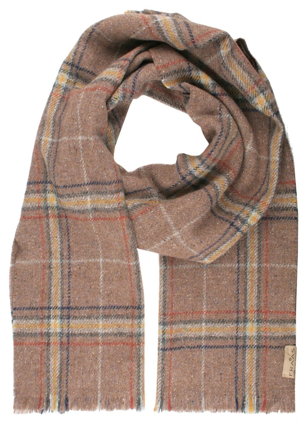 Zimowy szalik znanej niemieckiej firmy V.Fraas istniejącej na rynku już prawie 130 lat. Szaliki nie tylko chronią szyję przed zimnem, są też doskonałym urozmaiceniem męskiej garderoby. Zachowane w stonowanej kolorystyce. Pasują zarówno do eleganckiego, jak i typowo miejskiego, luźnego stroju. Oprócz wełny, szalik posiada domieszkę jedwabiu – jednej z najbardziej delikatnych, naturalnych tkanin. Wymiary szalika (w cm) – długość (z frędzlami): ok. 196 / szerokość: ok. 37. Materiał: żywa wełna (40%), poliamid (22%), jedwab (20%), wiskoza (15%), inne włókna (3%).