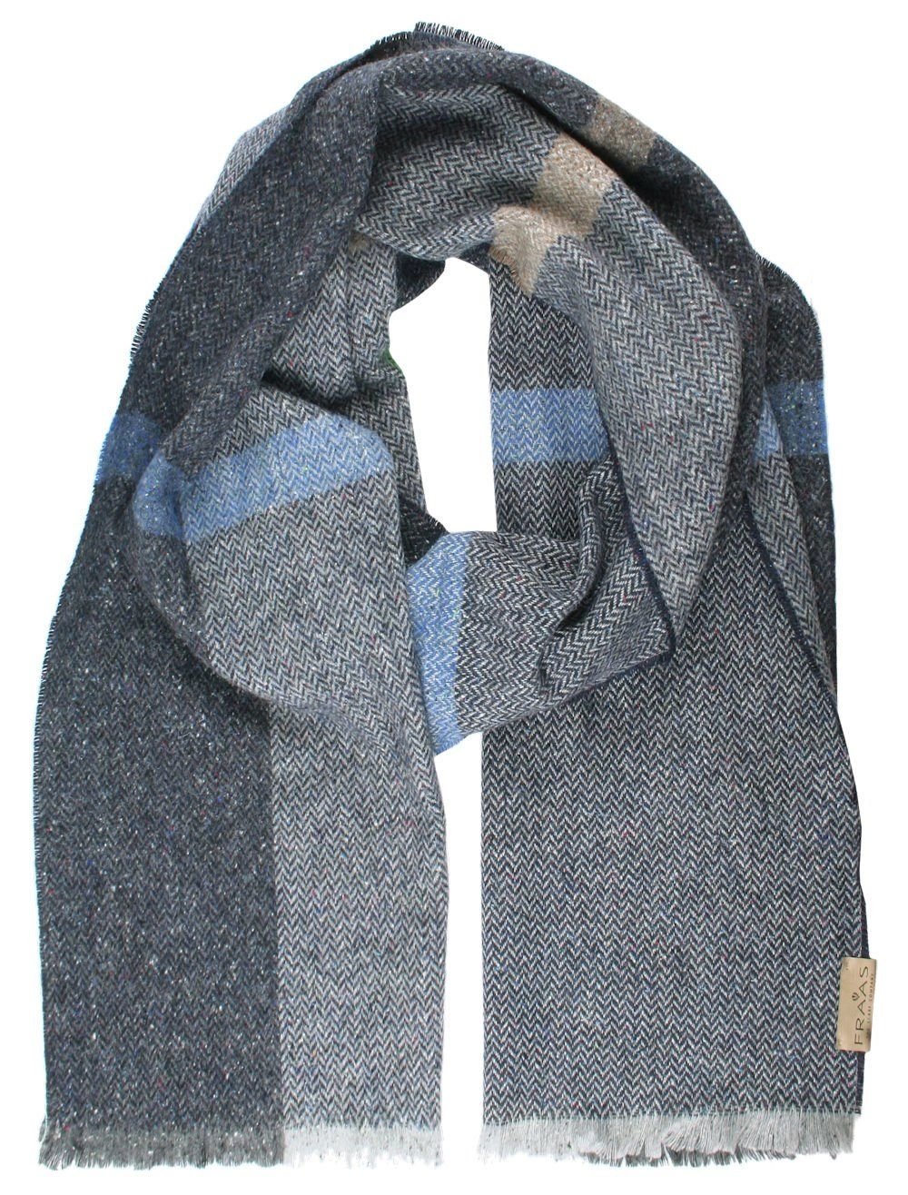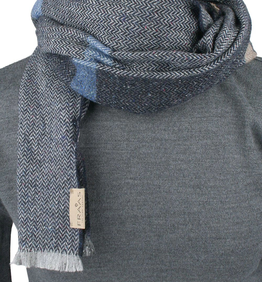 Zimowy szalik znanej niemieckiej firmy V.Fraas istniejącej na rynku już prawie 130 lat. Szaliki nie tylko chronią szyję przed zimnem, są też doskonałym urozmaiceniem męskiej garderoby. Zachowane w stonowanej kolorystyce. Pasują zarówno do eleganckiego, jak i typowo miejskiego, luźnego stroju. Oprócz wełny, szalik posiada domieszkę jedwabiu – jednej z najbardziej delikatnych, naturalnych tkanin. Wymiary szalika (w cm) – długość (z frędzlami): ok. 196 / szerokość: ok. 37. Materiał: żywa wełna (40%), nylon (26%), jedwab (16%), wiskoza (16%).