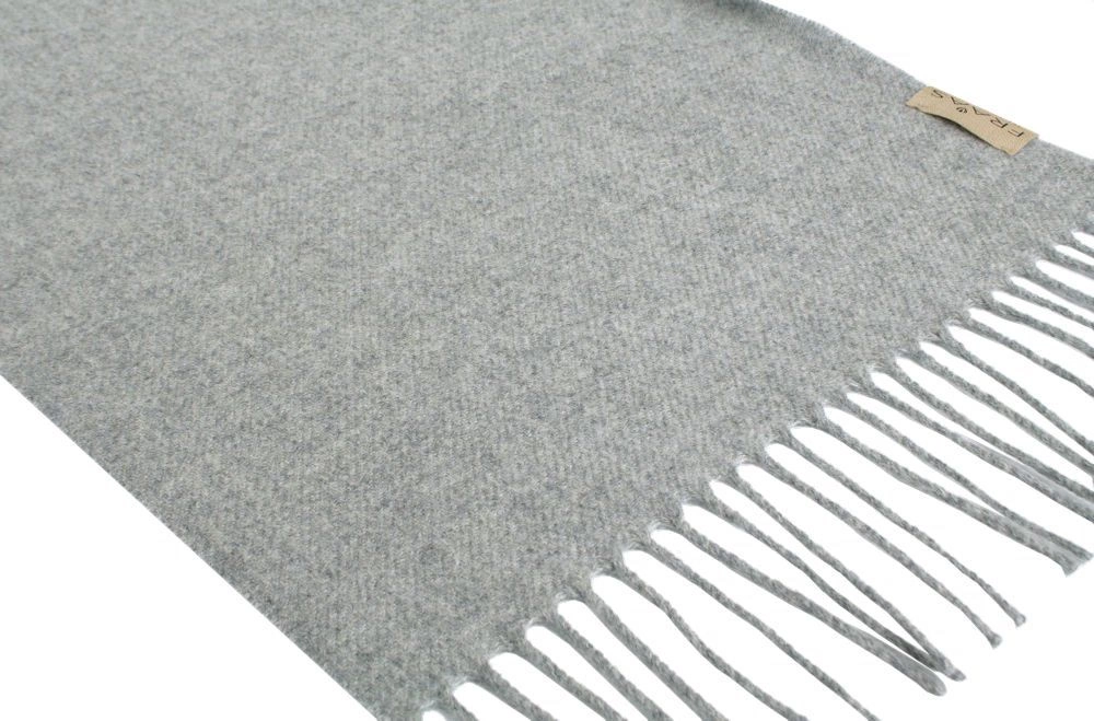 Materiał: wełna kaszmirska (100%). UWAGA: Szalik zapakowany jest w pudełko z elegancką bibułką. Jest to gotowy pomysł na prezent. Do zestawu dołączamy kopię certyfikatów Woolmark jako dowód jakości przędzy oraz produktów gotowych.