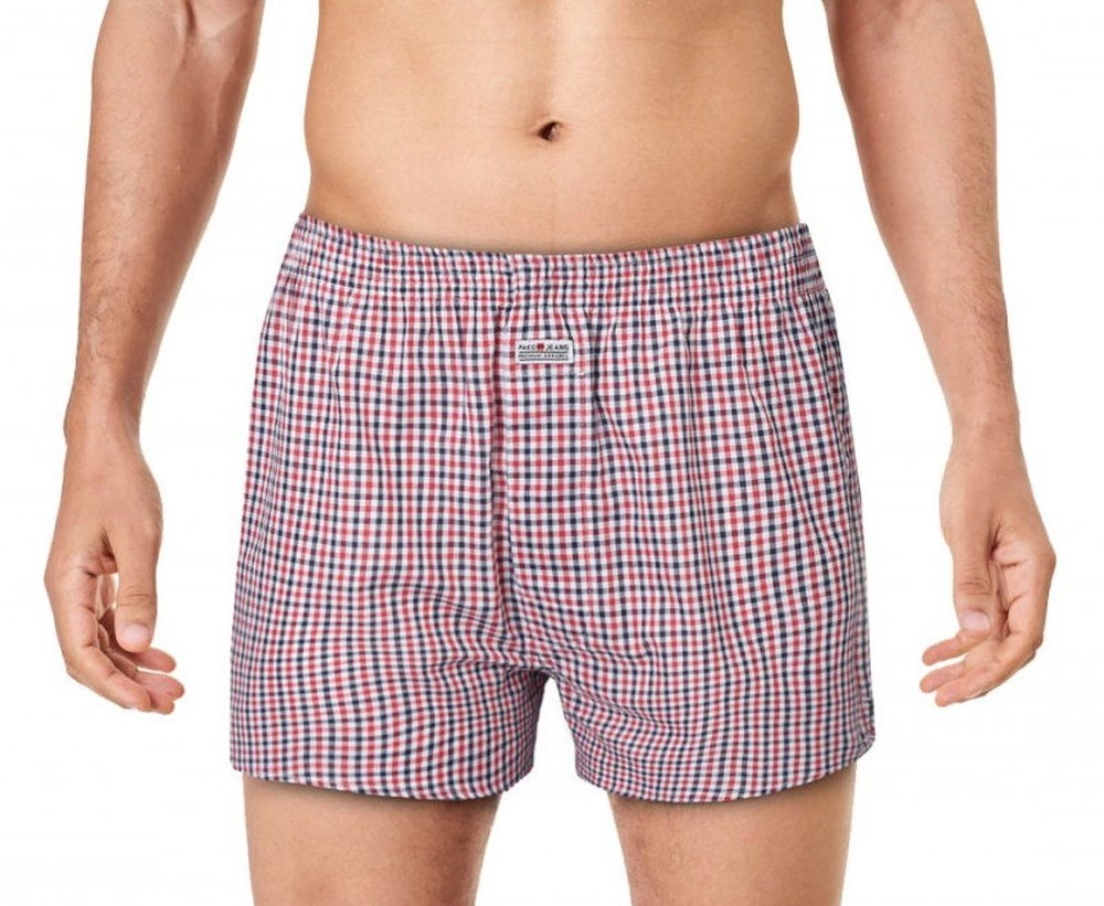 Męskie Bokserki Bawełniane - Pako Jeans - Drobna Kratka, Czerwień