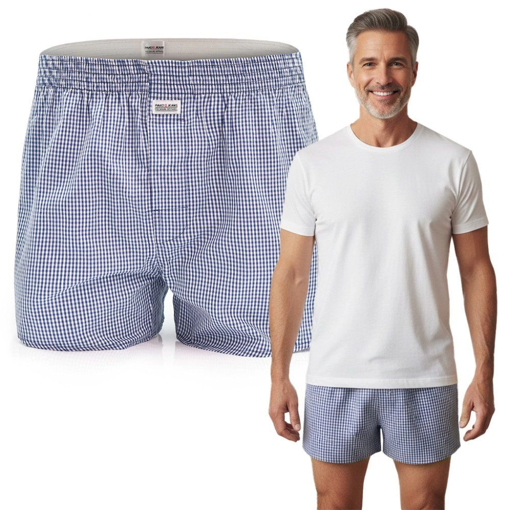 Męskie Bokserki Bawełniane - Pako Jeans - Drobna, Niebieska Kratka