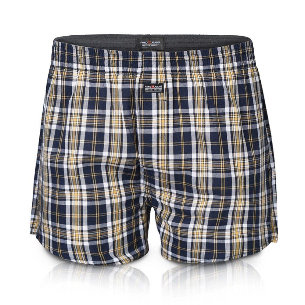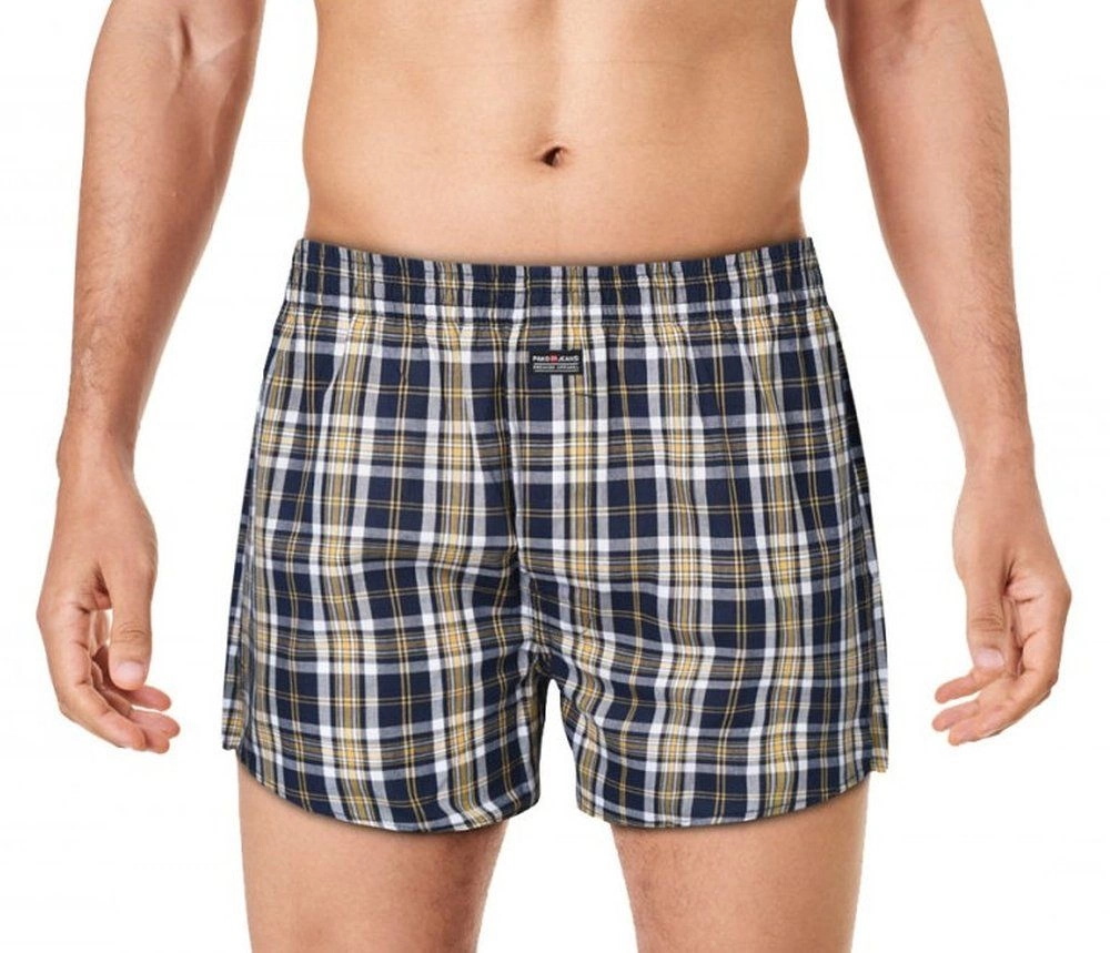 Męskie Bokserki Bawełniane - Pako Jeans - Granatowo-Żółta Kratka