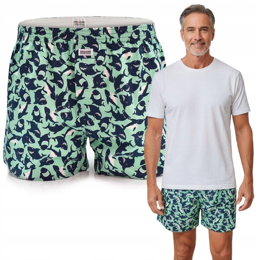 Męskie Bokserki Bawełniane - Pako Jeans - Wesołe Rekiny