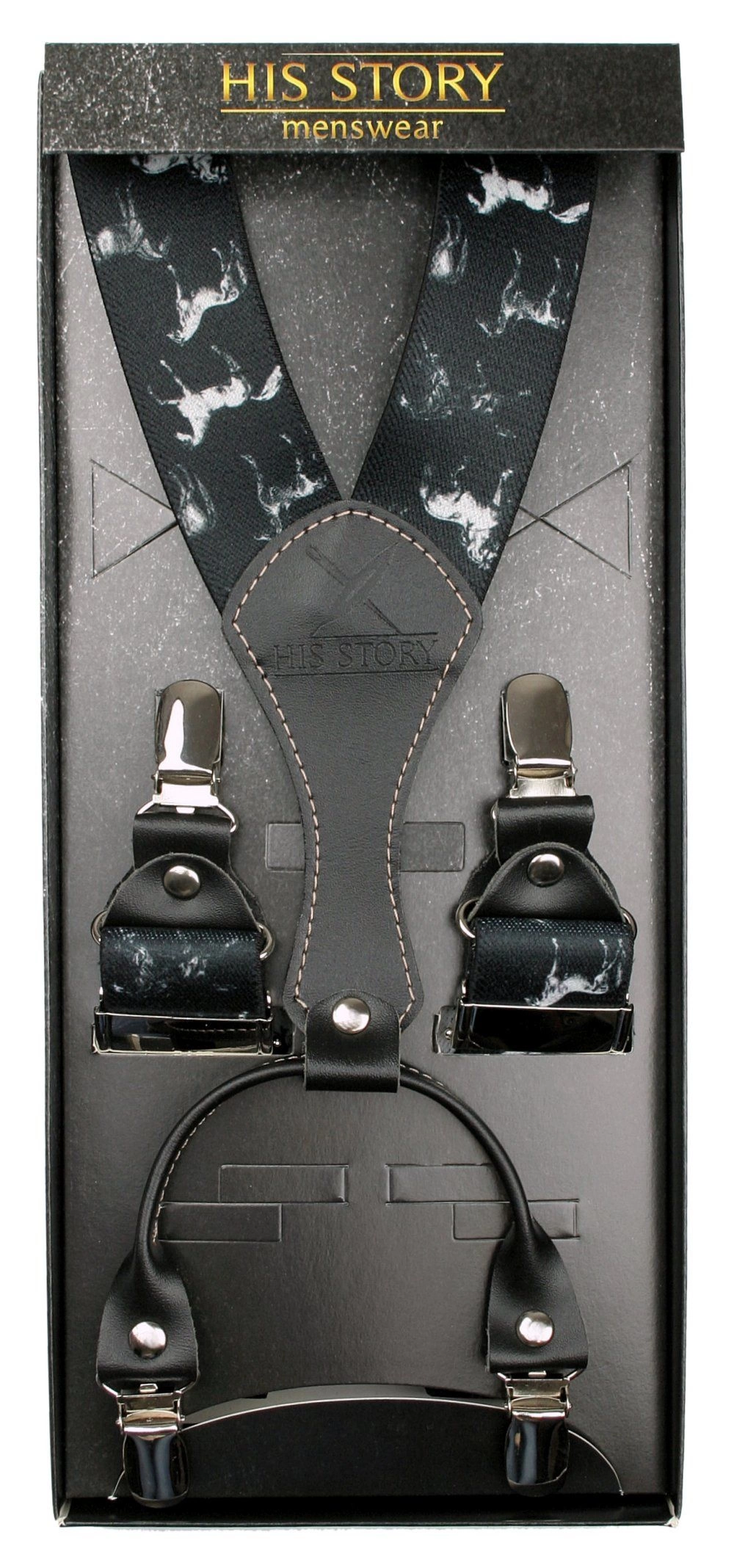 Eleganckie szelki męskie marki HIS STORY. Doskonałe wykonanie oraz dobre materiały gwarantują wysoką jakość produktu. Szelki to obecnie bardzo mode uzupełnienie weekendowego i klubowego stroju. Posiadają regulację długości, więc każdy będzie mógł je dostosować idealnie pod siebie. Mają także metalowe zapięcia. Szerokość gumy to 3,5 cm. Zapakowane są w kartonowe pudełko, idealnie nadające się na prezent.