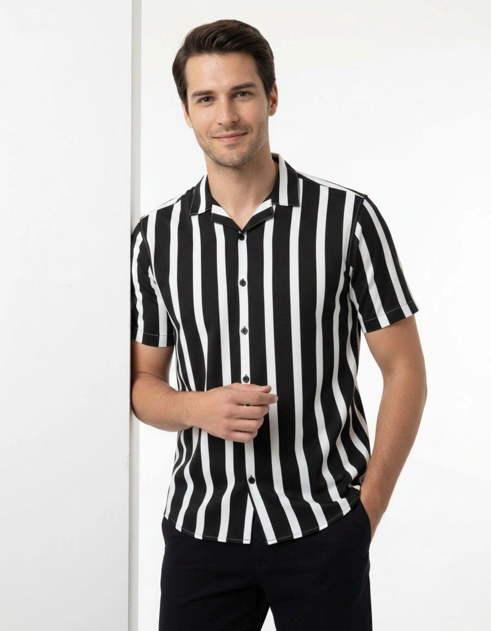 Oryginalna Męska Koszula Weekendowa - Brave Soul - Czarna w Duże Pasy