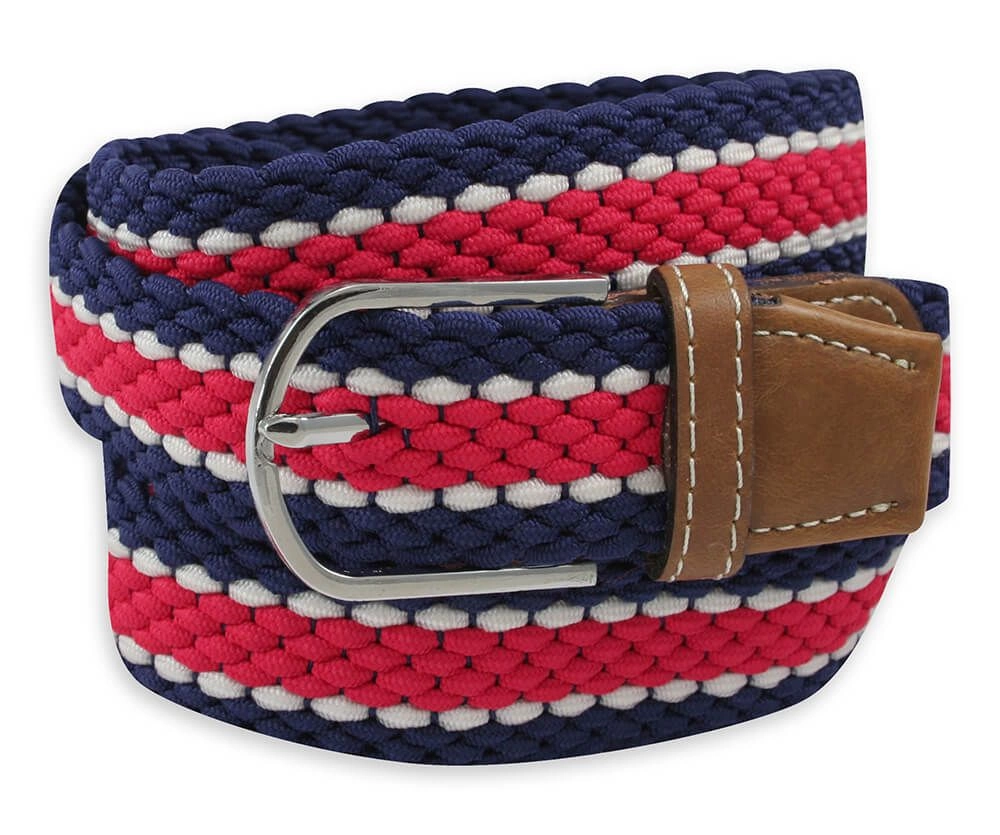 Pasek Elastyczny, Chabrowo-Czerwono-Biały, Pleciony, do Spodni, Casualowy, Parciany -ALTIES