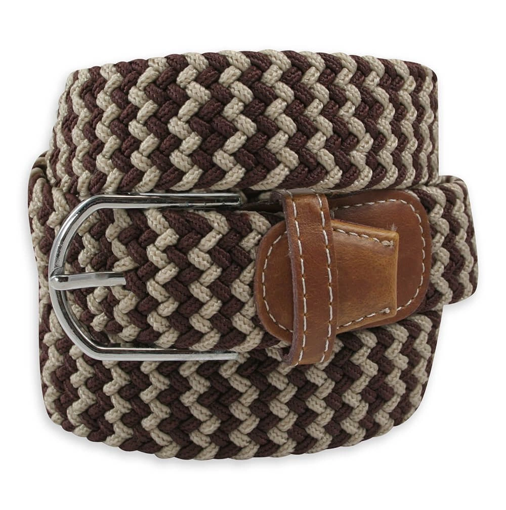 Pasek Elastyczny, Pleciony, Brązowo-Beżowy, do Spodni, Casualowy, Parciany -ALTIES