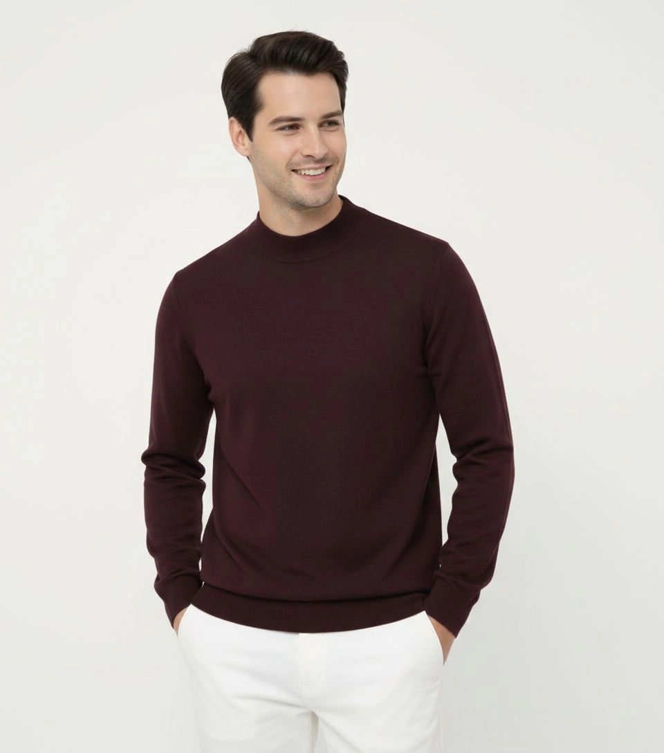 Półgolf Burgundowy Bawełniany, Prosty Krój, Klasyczny, Męski -Brave Soul