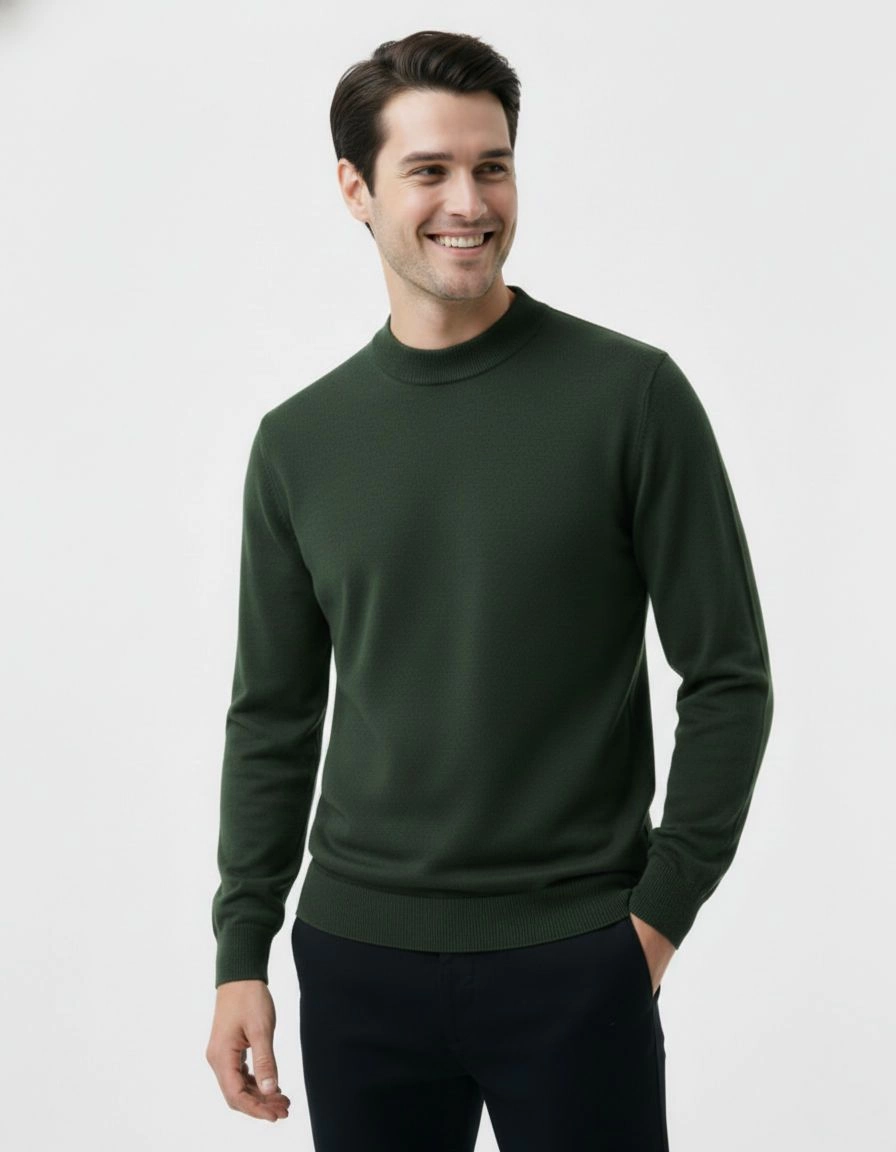 Półgolf Zielony, Butelkowy, Bawełniany, Prosty Krój, Klasyczny, Męski -Brave Soul