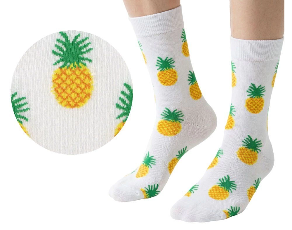Skarpetki Bawełniane - Tematyczne - Białe w Ananasy