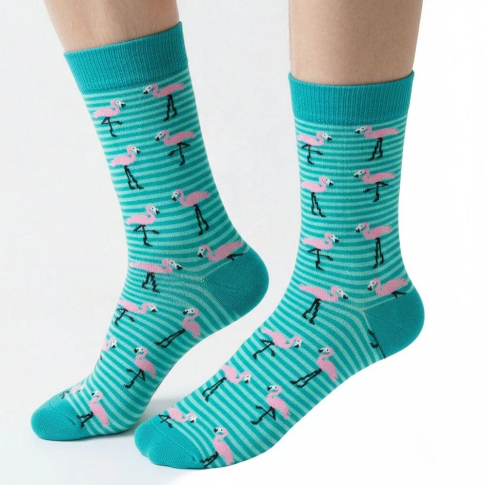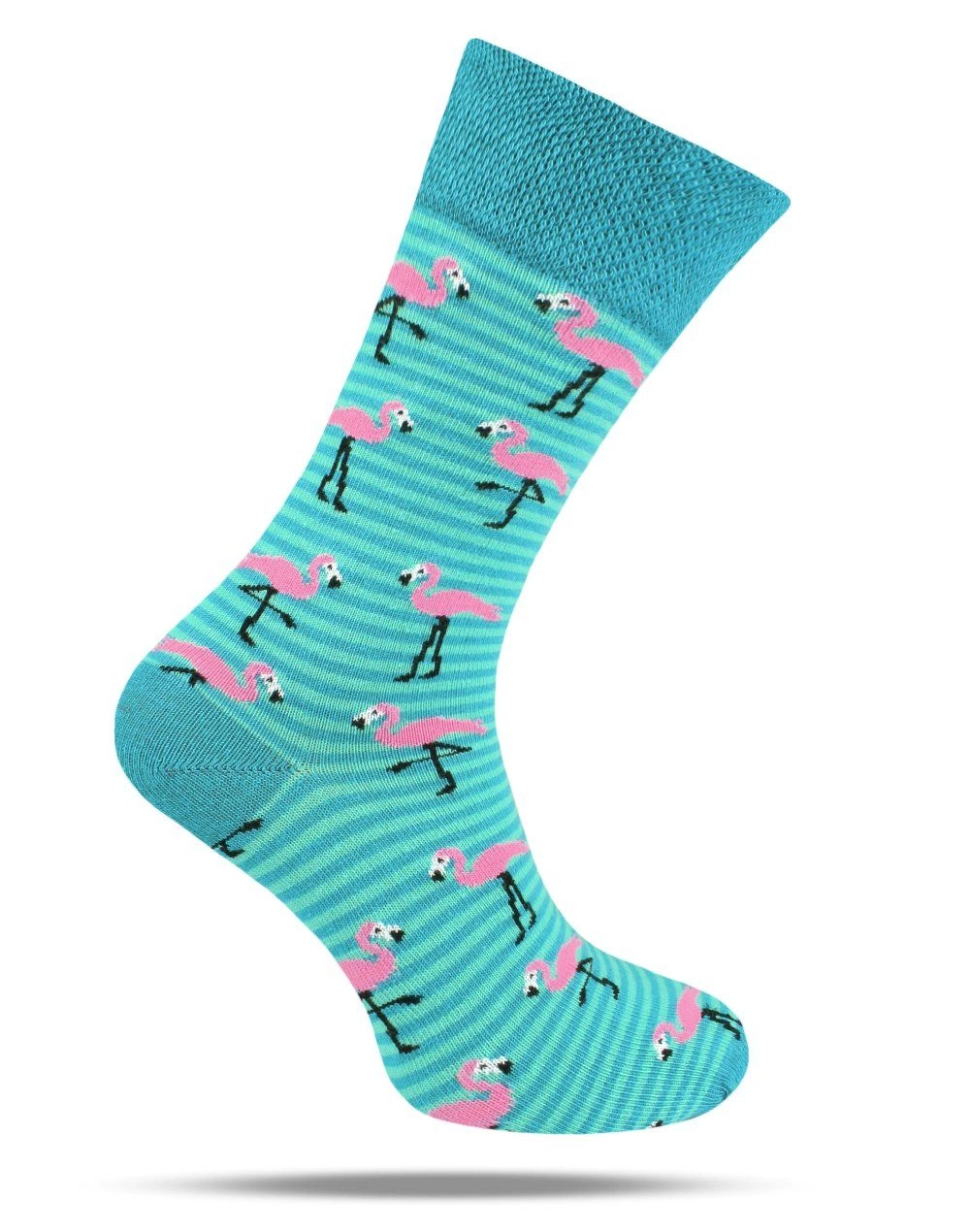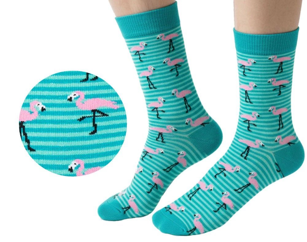 Skarpetki Bawełniane - Tematyczne - Turkusowe we Flamingi