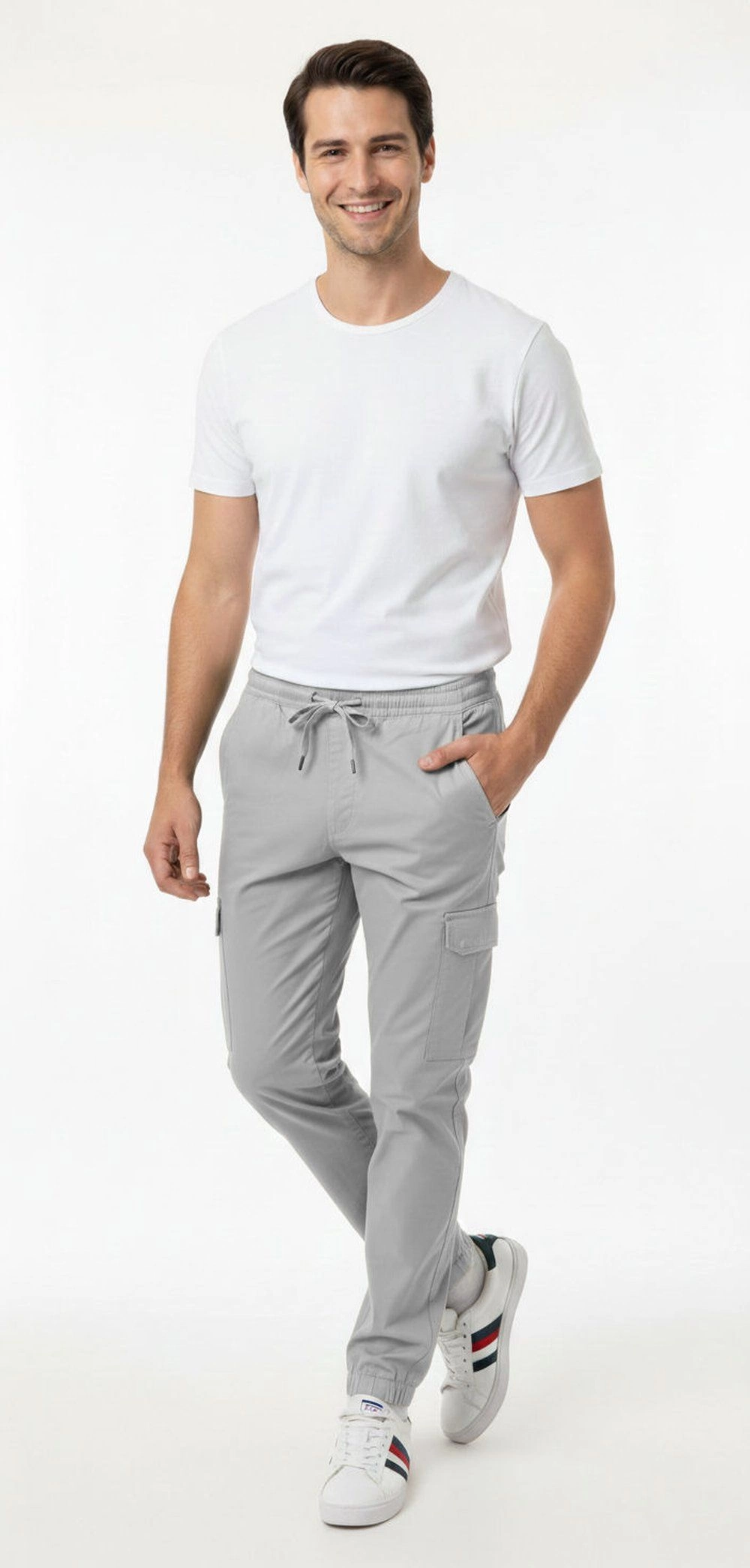 Spodnie JOGGERY Jasne Szare Męskie, Bojówki, Bawełniane, Casualowe, Zwężana Nogawka -BRAVE SOUL