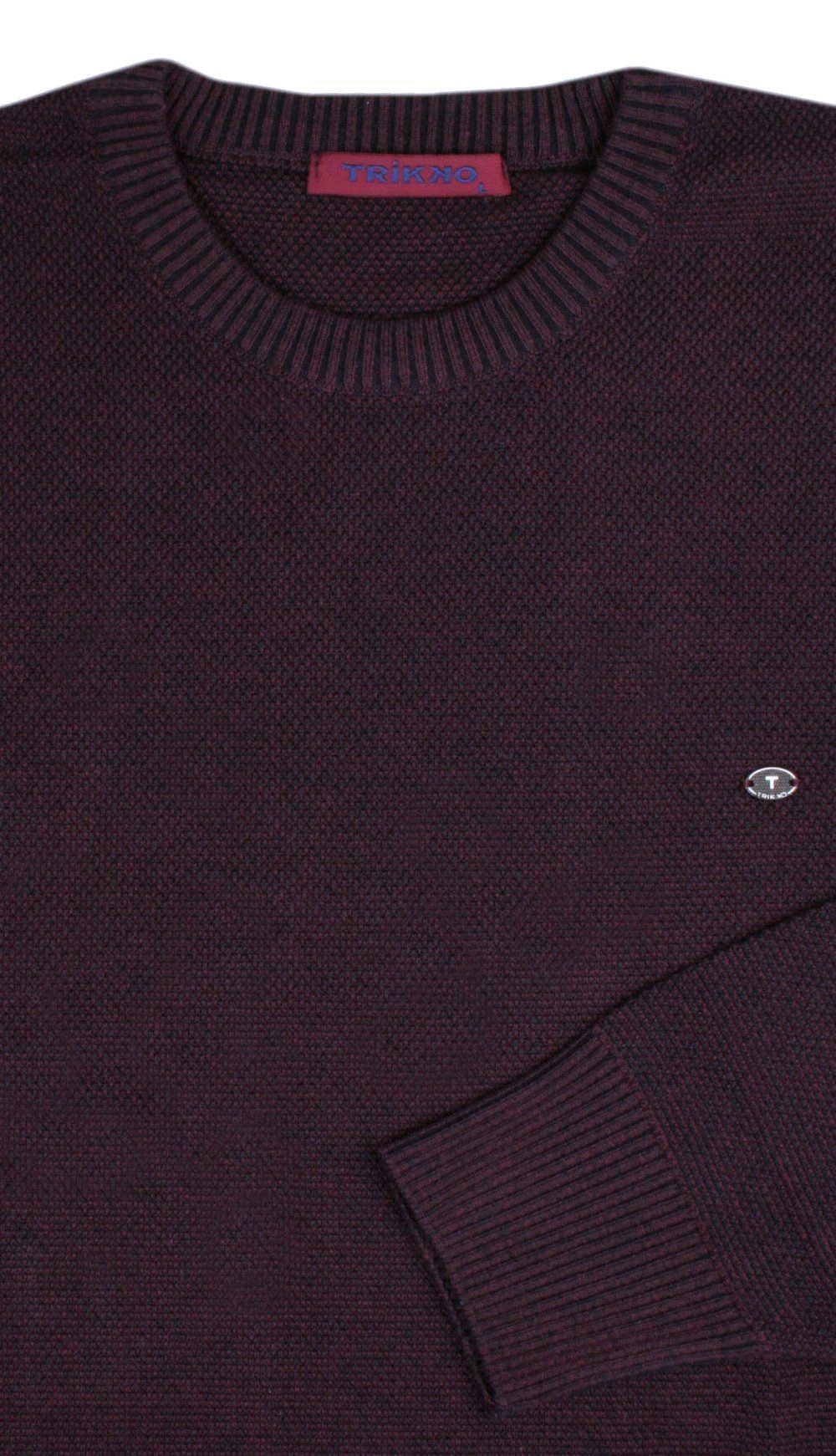 Sweter Bordowy w Okrągły Dekolt, U-neck, Męski -TRIKKO