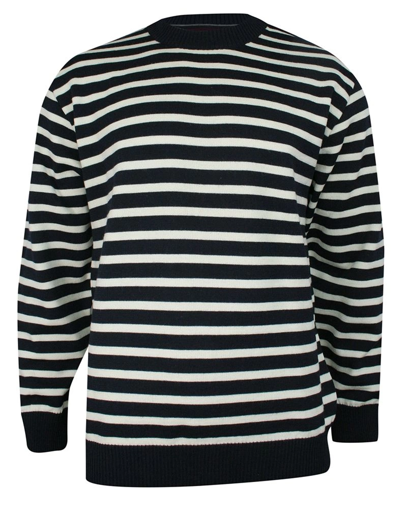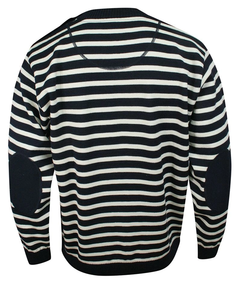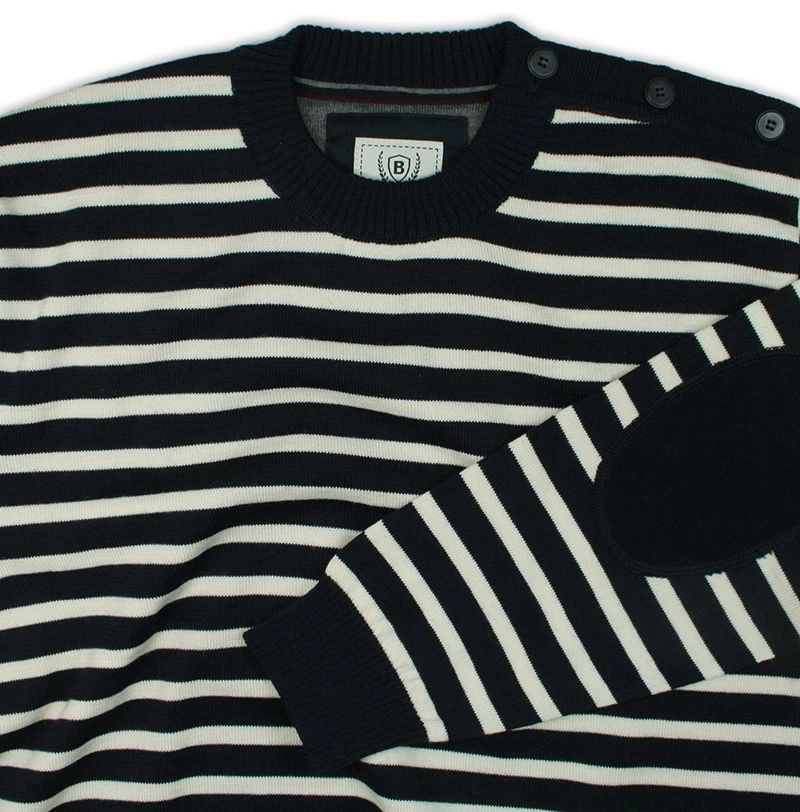 Sweter Granatowo-Biały w Paski, Łaty na Rękawach, Okrągły Dekolt (U-neck), Męski - BELIKA