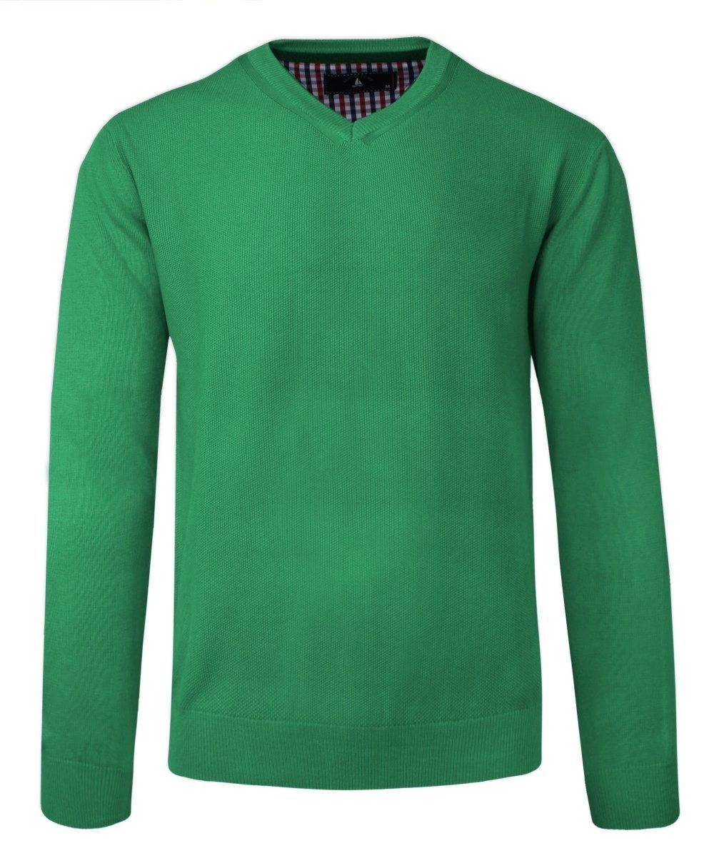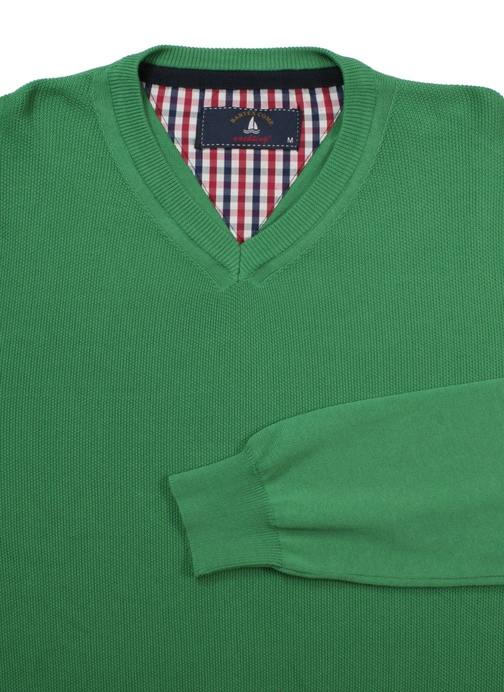 Sweter w Serek, Zielony, Bawełniany, V-neck, Męski -BARTEX