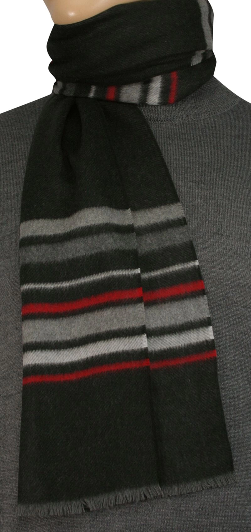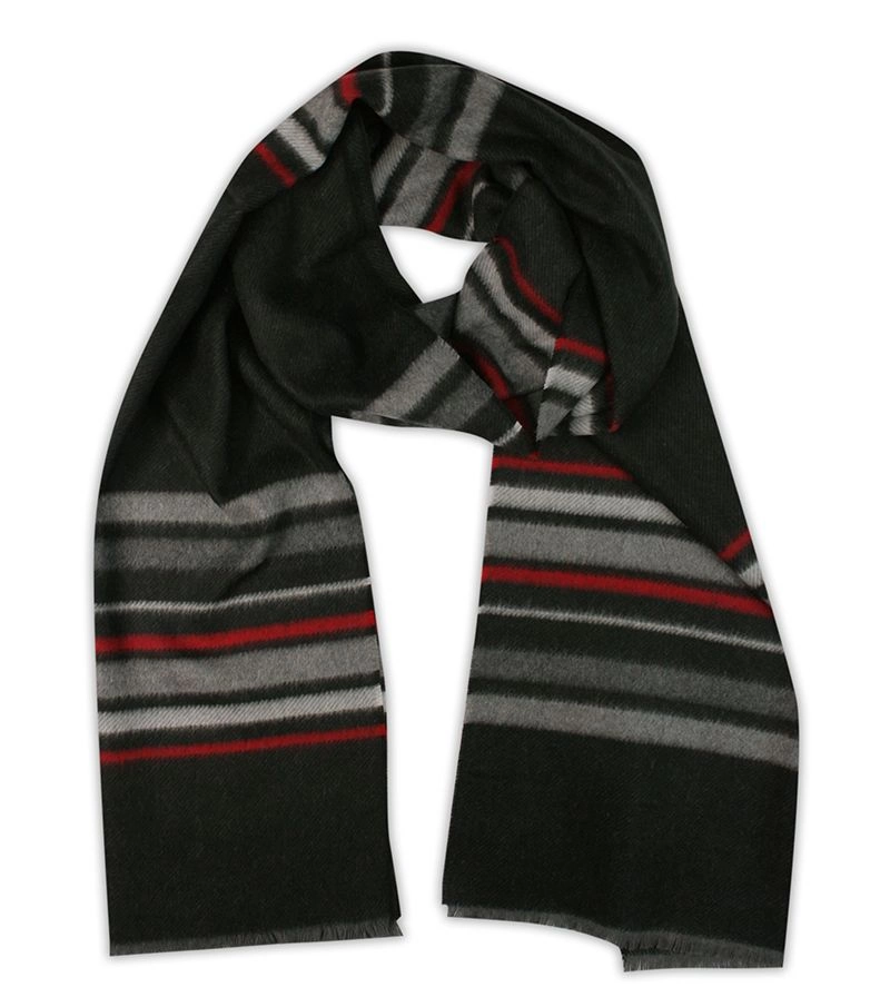 Szalik Czarno-Szary Miękki, w Paski, Prążki, Firmy V.Fraas -Cashmink- Elegancki, Męski