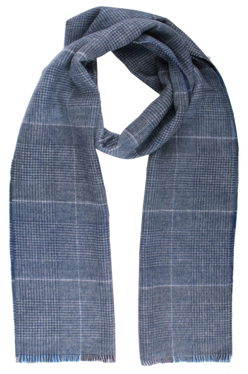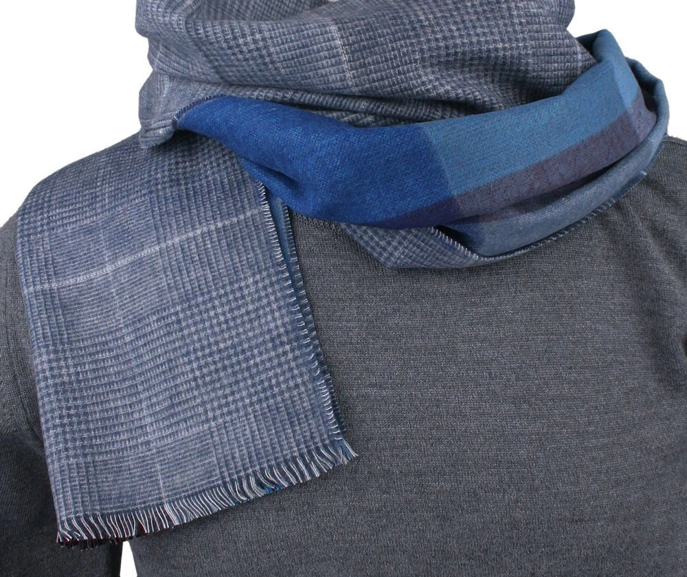 Szalik Męski V. Fraas - Cashmink - Niebieski, Dwustronny, Kratka