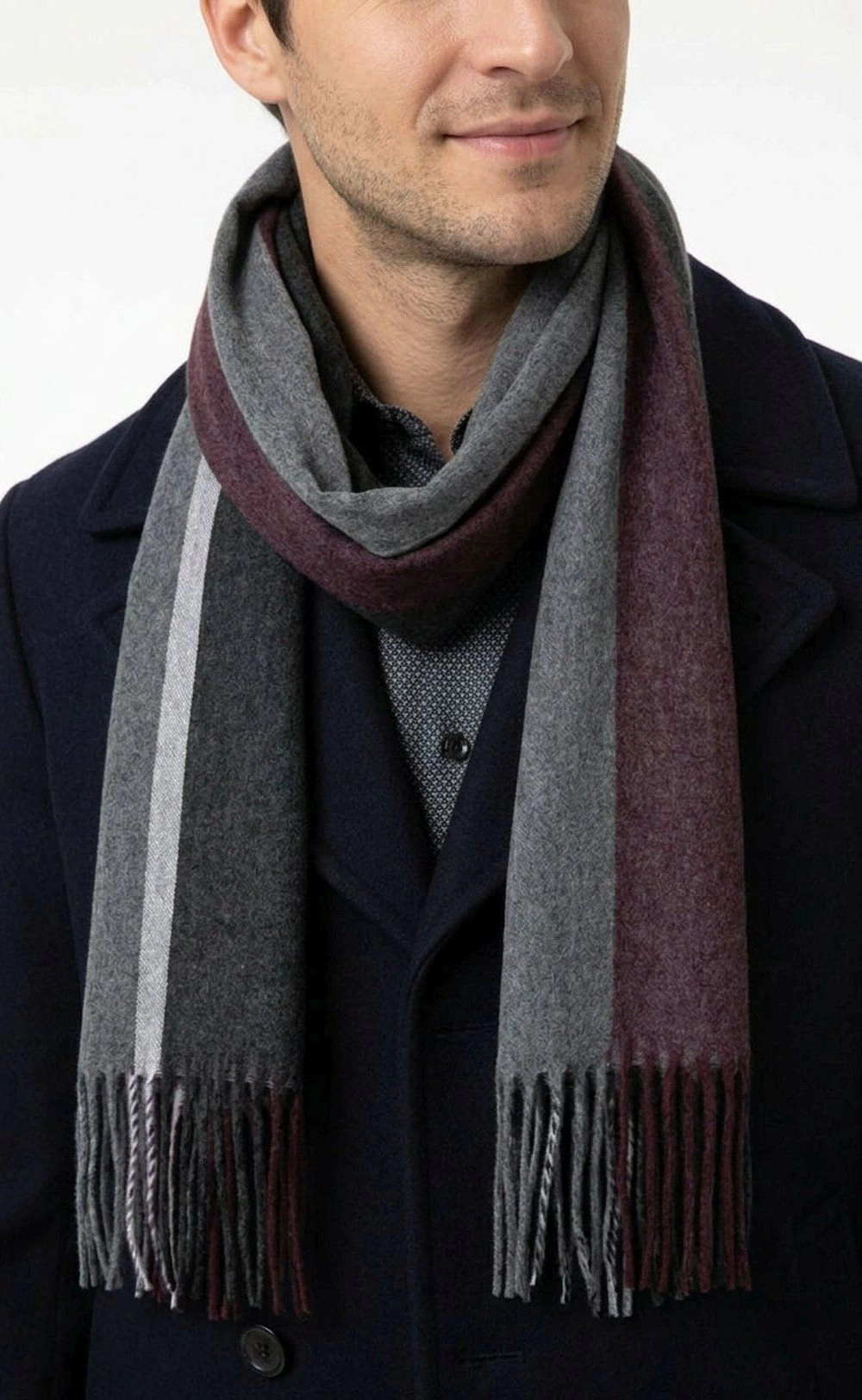 Szalik Męski V. Fraas - Cashmink - Odcienie Popielu i Bordo