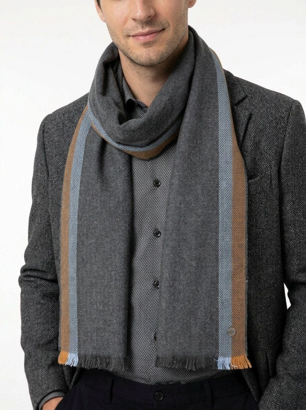 Szalik Męski - V. Fraas - Cashmink - Popiel, Pasy