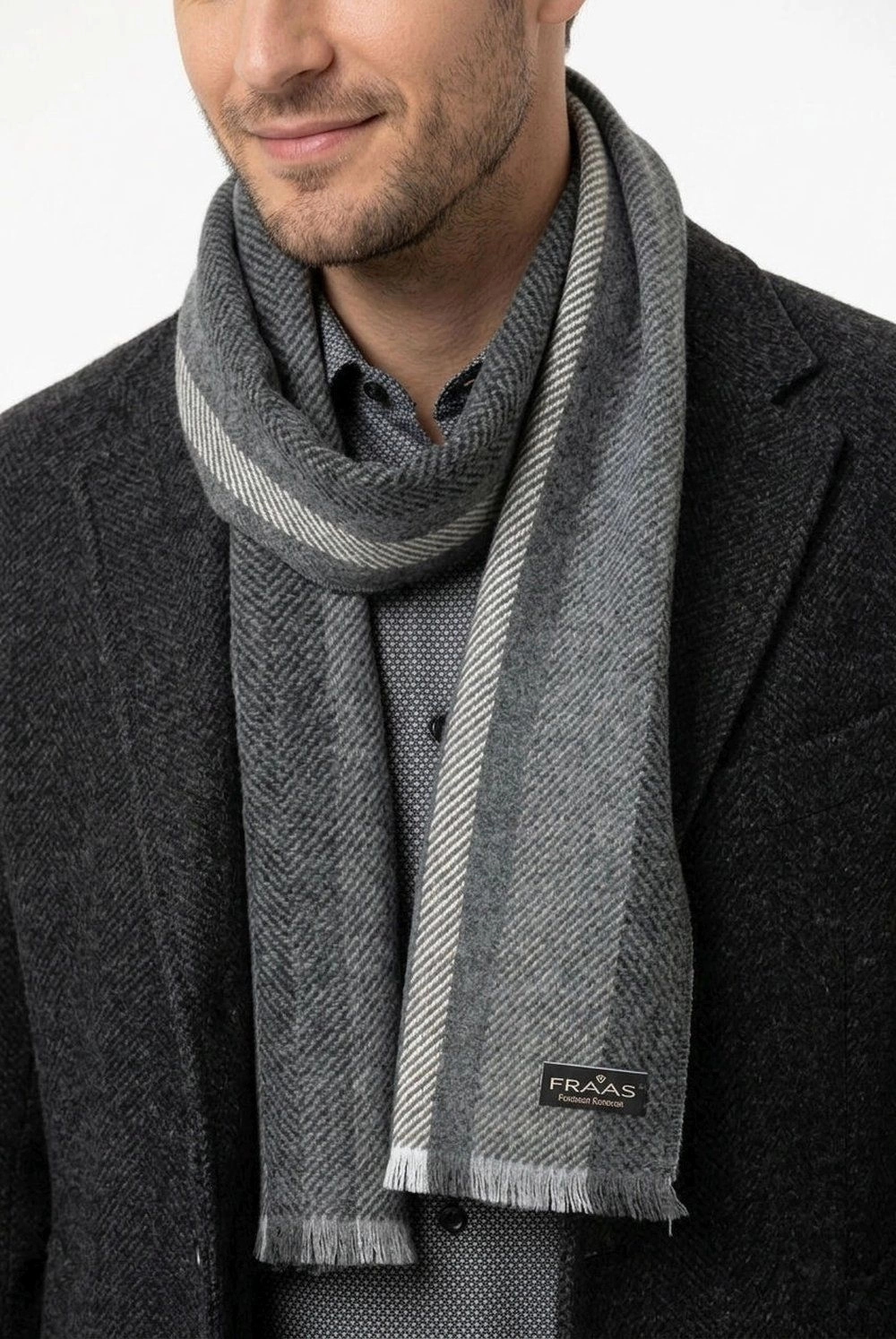 Szalik Męski - V. Fraas - Cashmink - Szarość i Srebro, Pasy