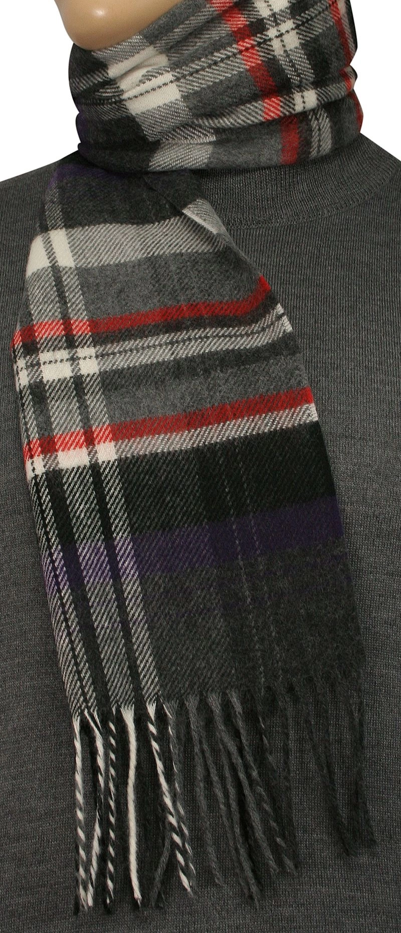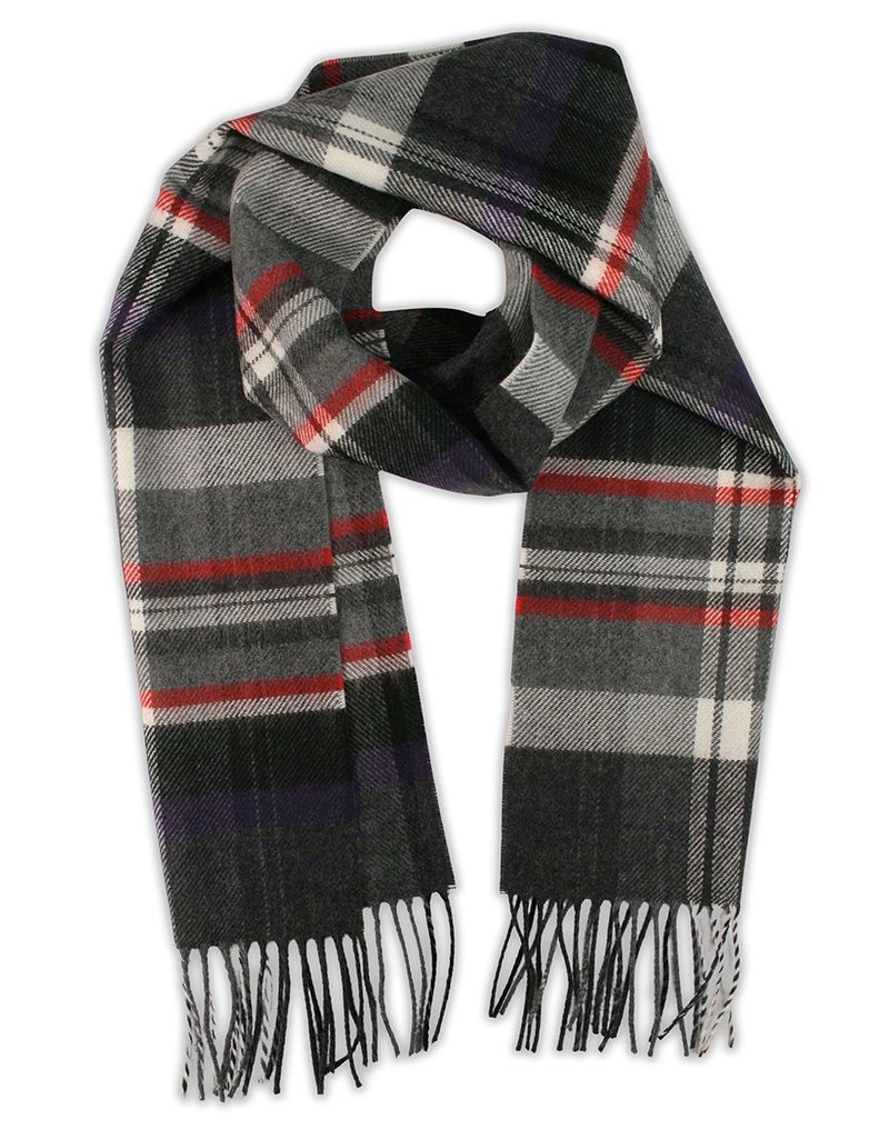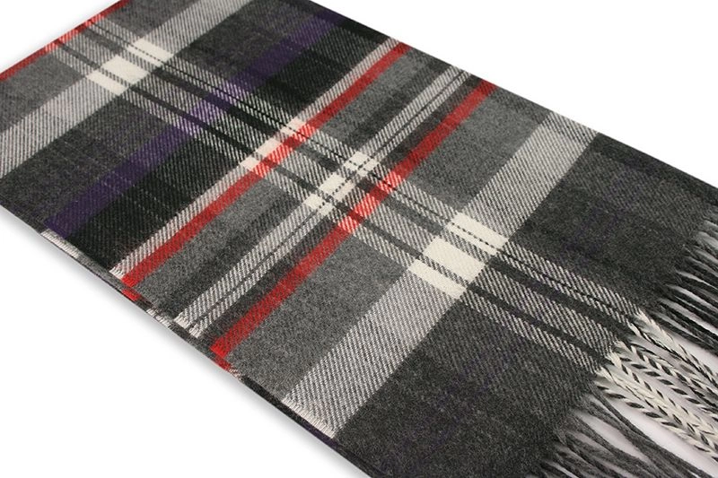 Szalik Szaro-Fioletowy w Kratkę Ciepły, z Frędzlami -V.FRAAS- Jesienno-Zimowy, Męski