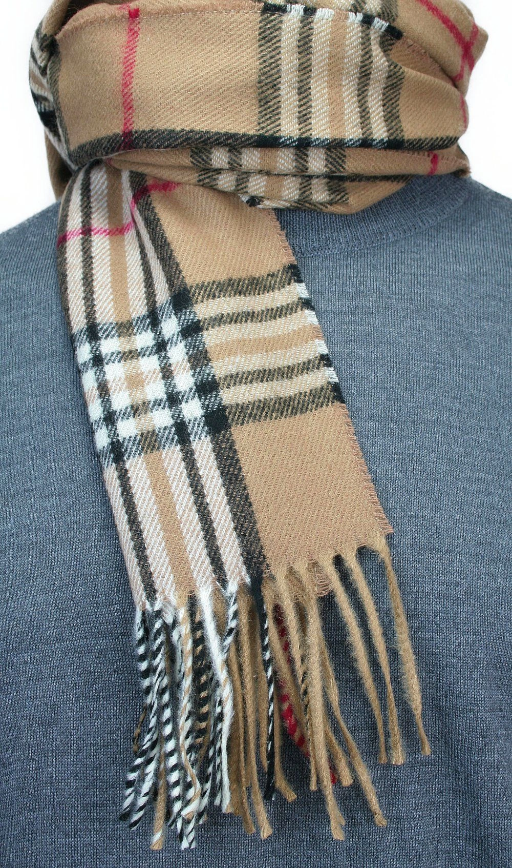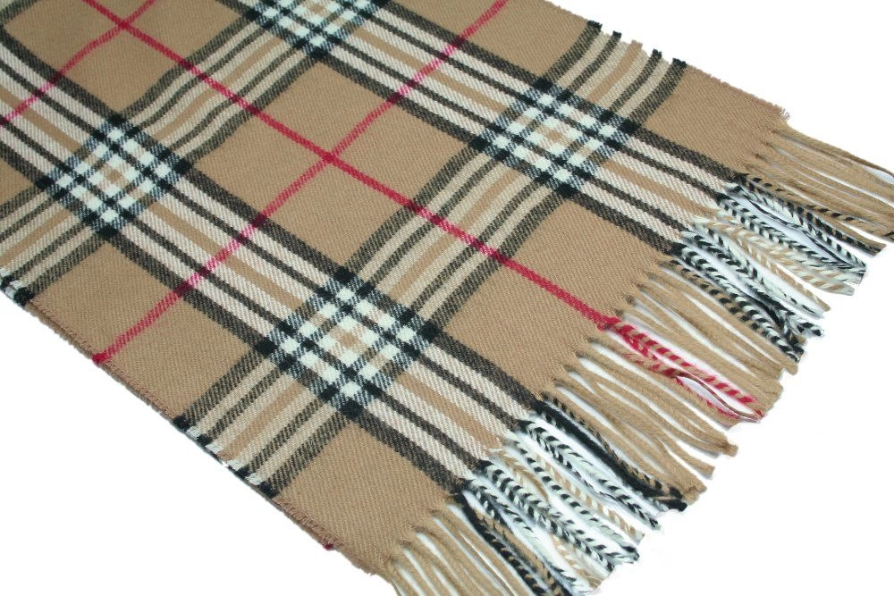 Szalik z Frędzlami, Beżowy Elegancki w Kratkę, Męski, Jesienno-Zimowy z Wełną -V. FRAAS