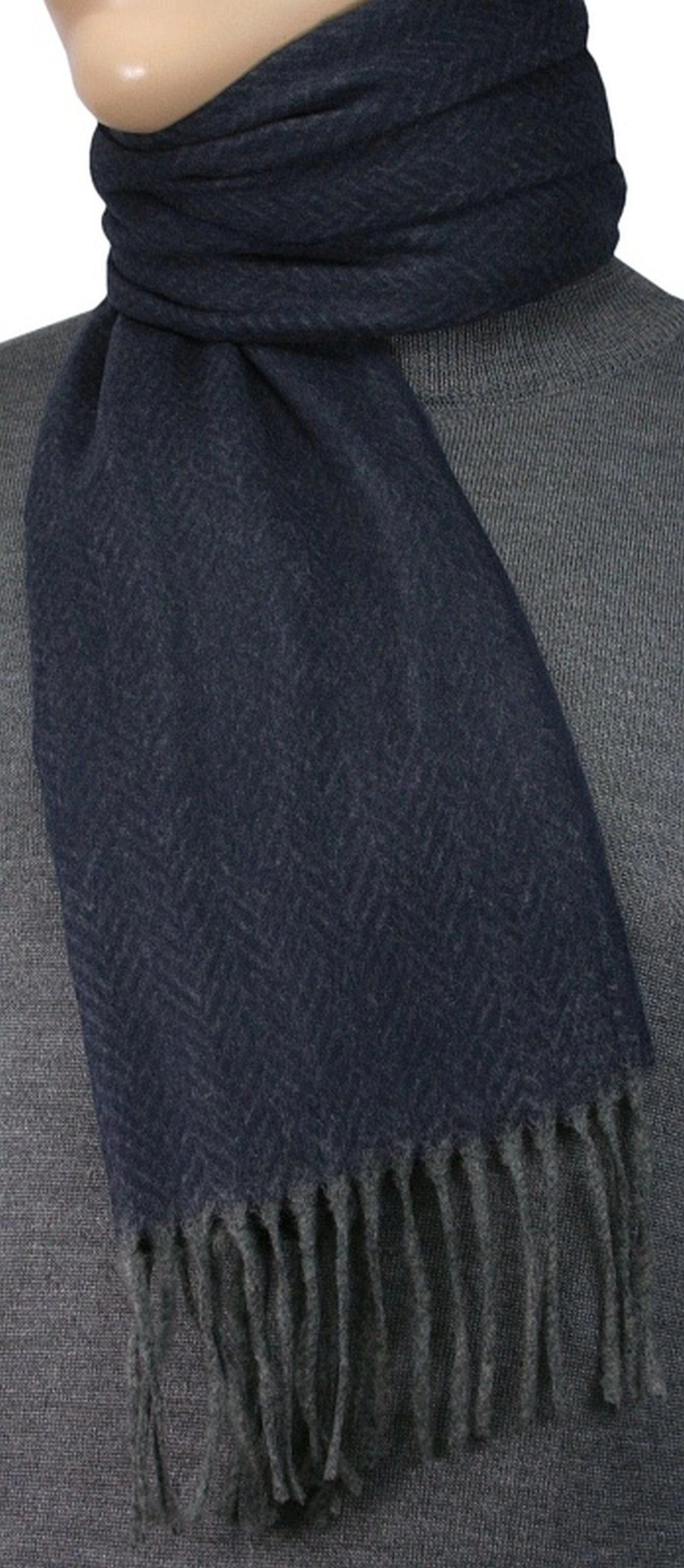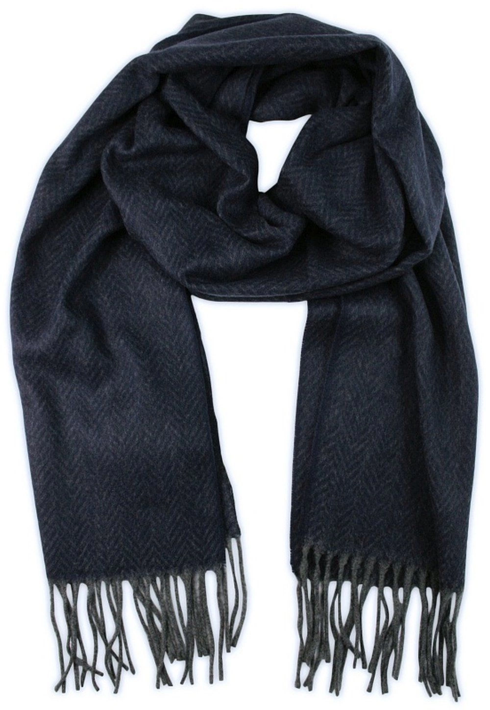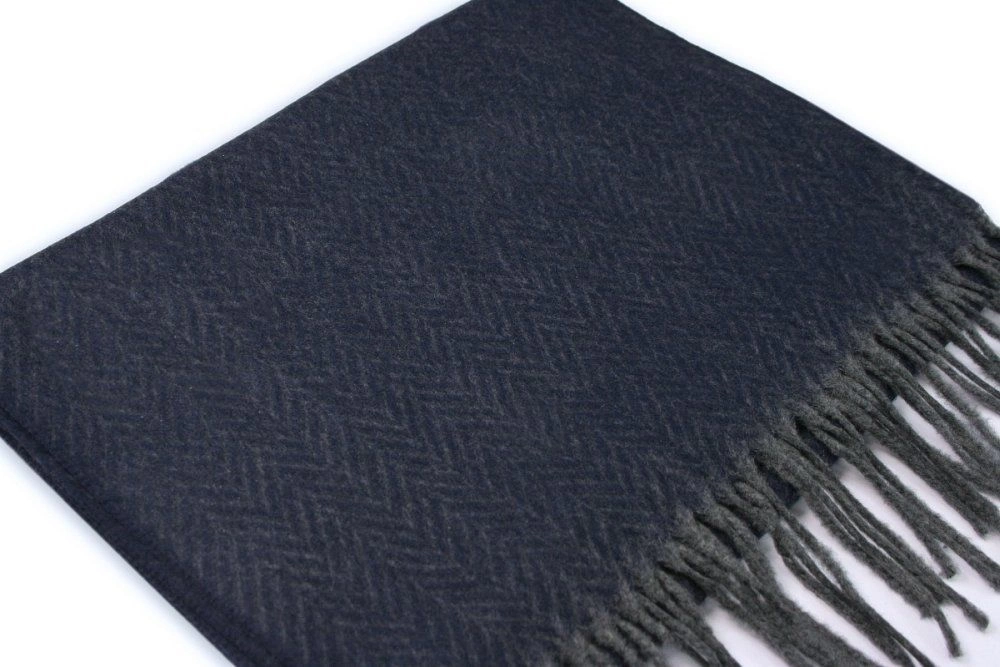 Szalik z Frędzlami, Granatowy w Jodełkę Miękki, Firmy V.Fraas -Cashmink
