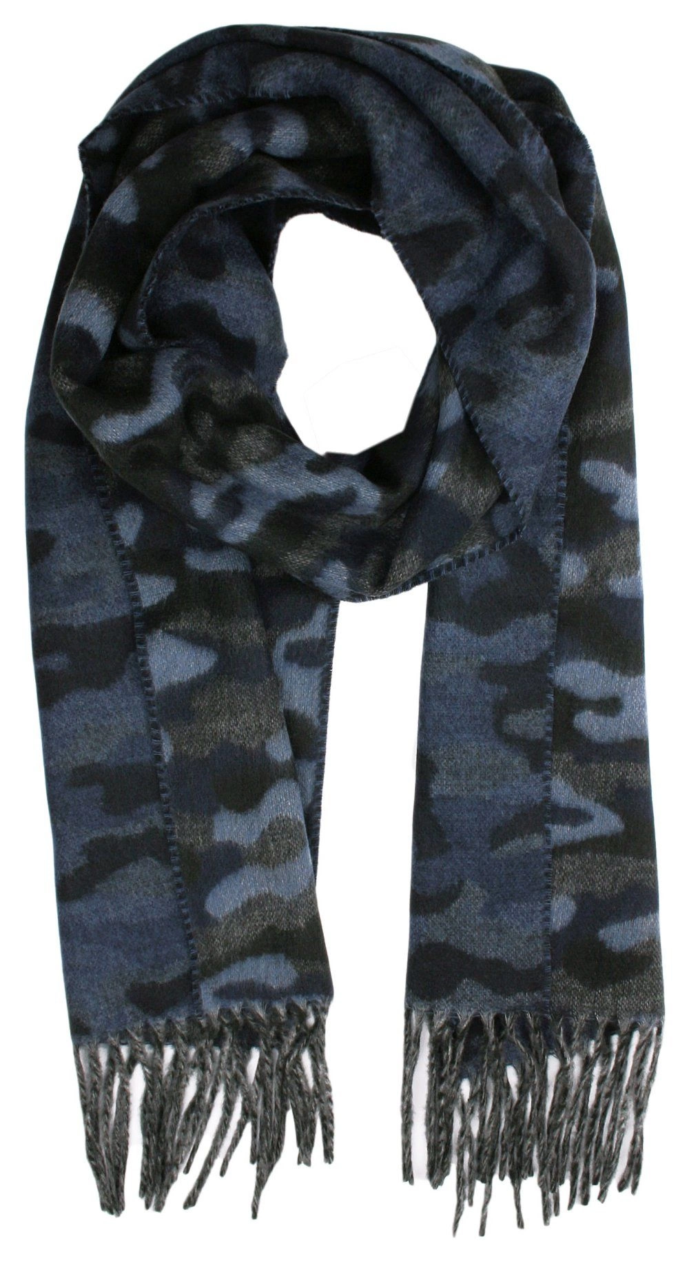 Szalik z Frędzlami, Granatowy w Moro, Miękki, Firmy V.Fraas -Cashmink