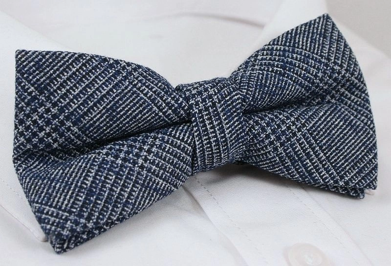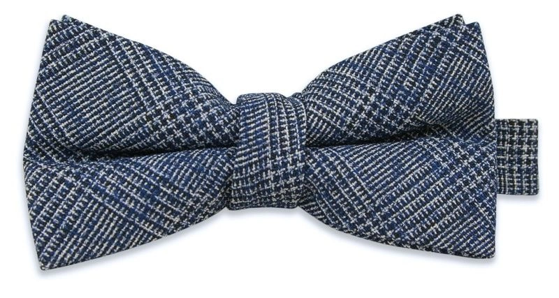 Szaro-Niebieska Mucha -EM Men's Accessories- Męska, w Kratkę, Bawełniana
