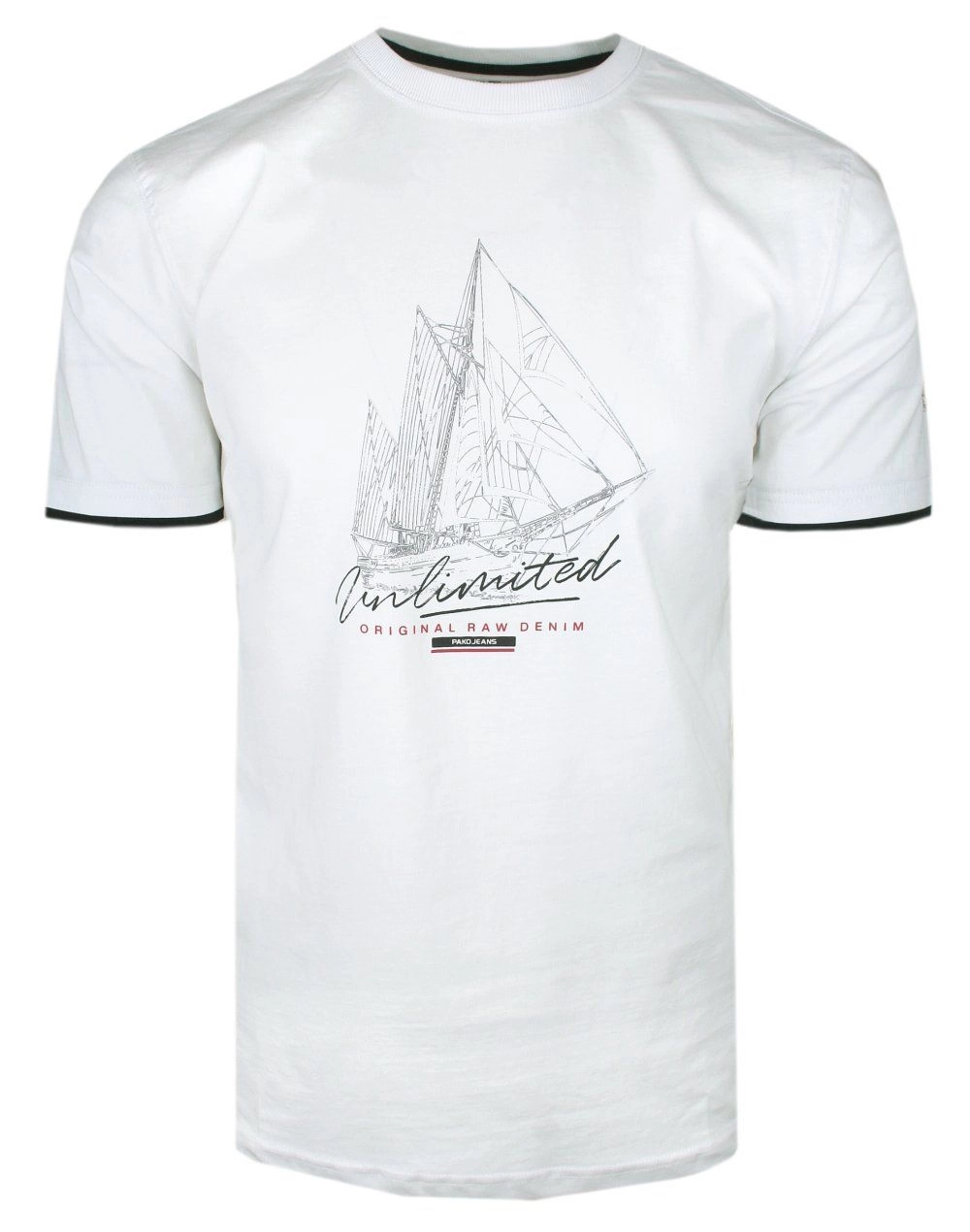 T-Shirt Męski - Biały z Motywem Żaglowca - Pako Jeans