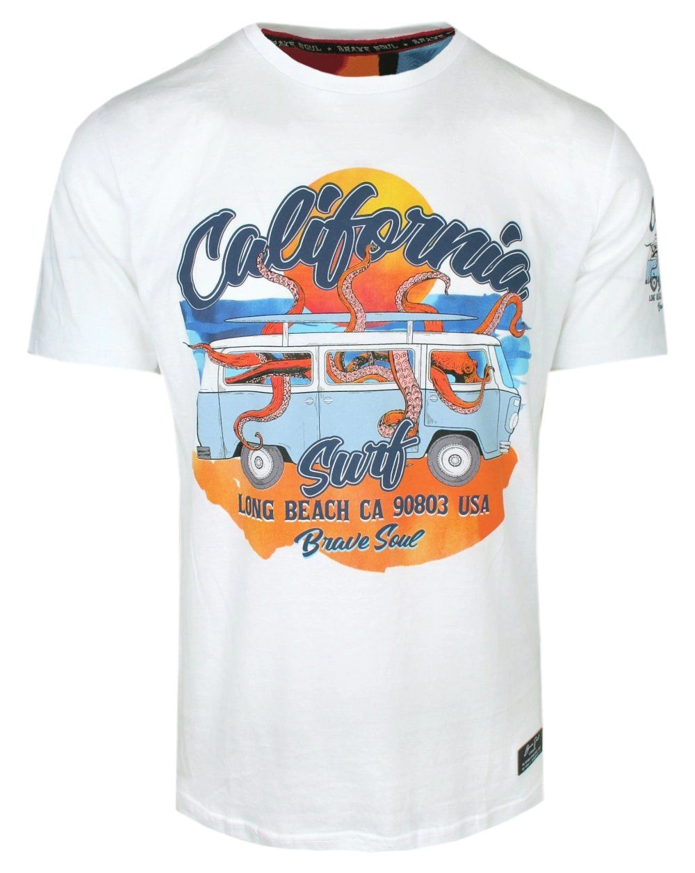 T-Shirt Męski z Nadrukiem - Brave Soul - Biały