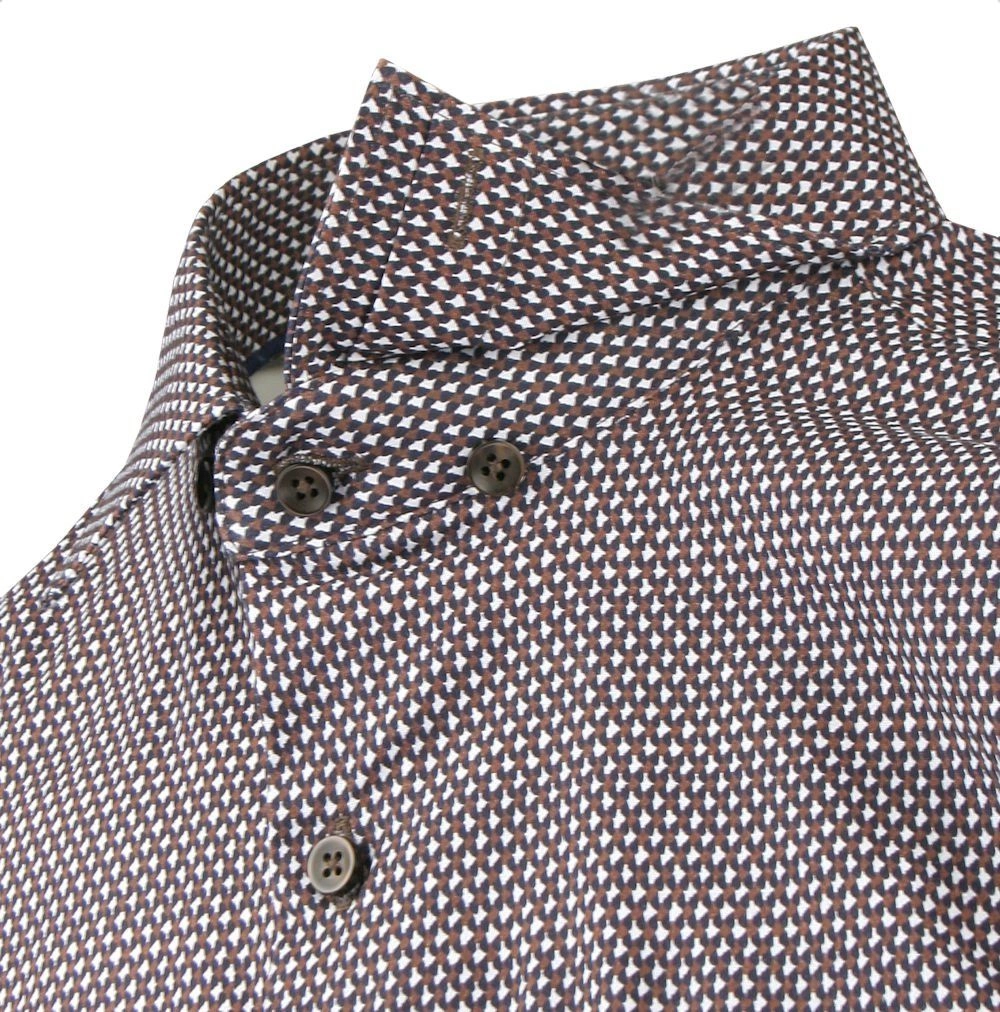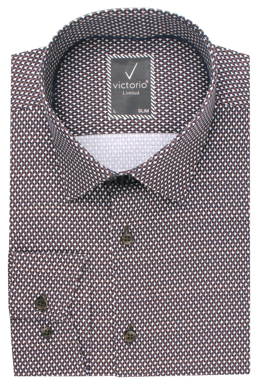 Taliowana Koszula Męska - Victorio - Drobny Wzór, Brązowa