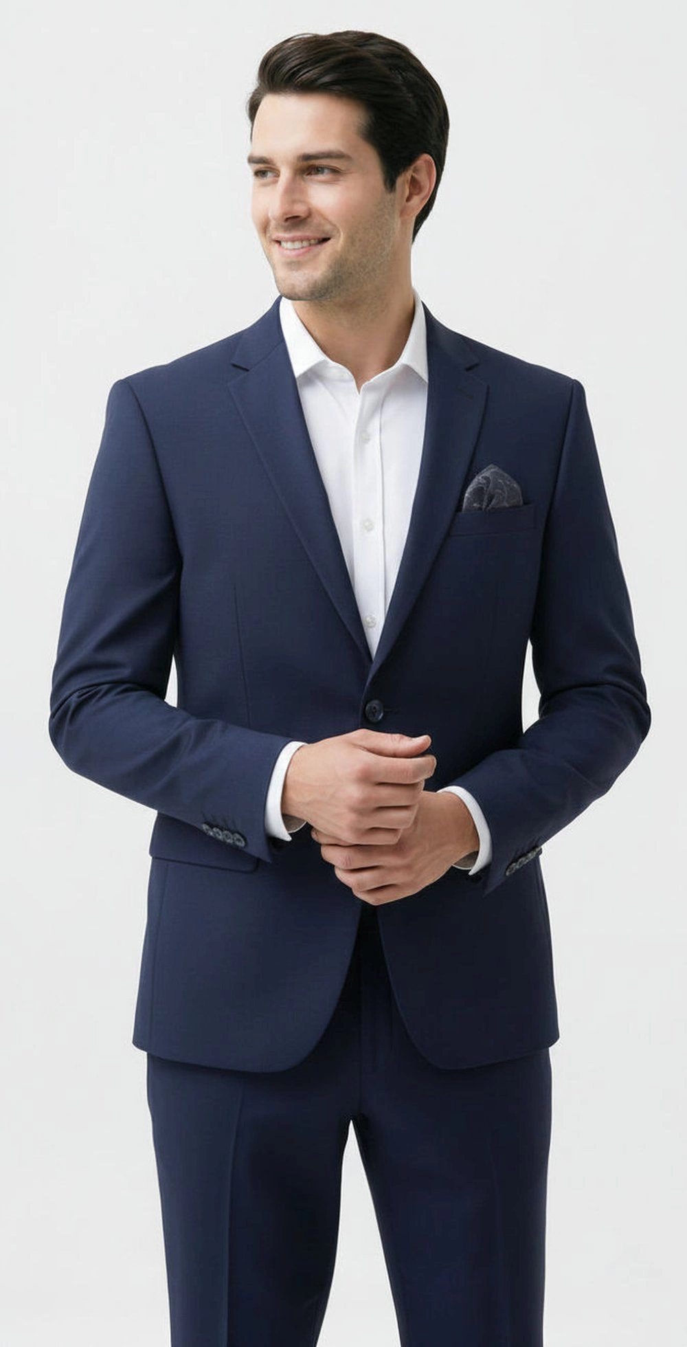 Taliowany Garnitur Męski - Victorio - Granatowy