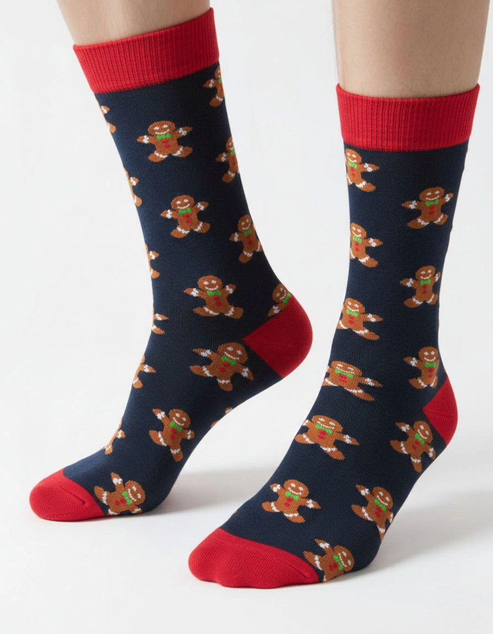 Tematyczne Skarpetki Bawełniane - Ciastek na Granatowym Tle