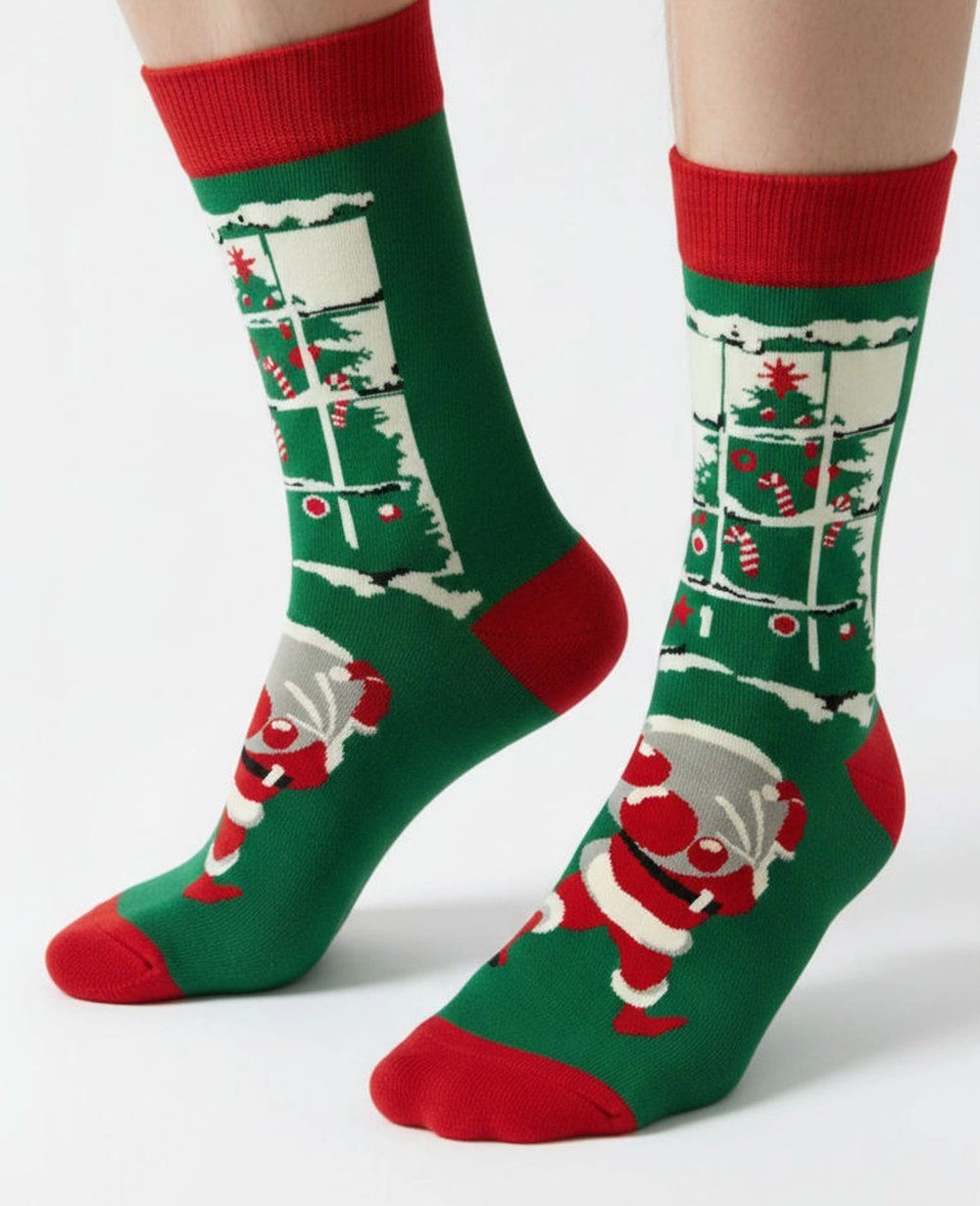 Tematyczne Skarpetki Bawełniane - Mikołaj z Prezentami