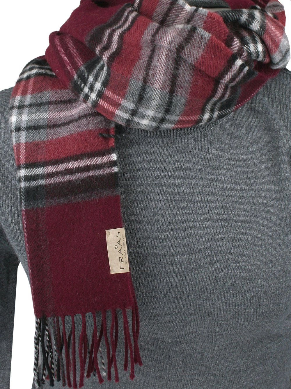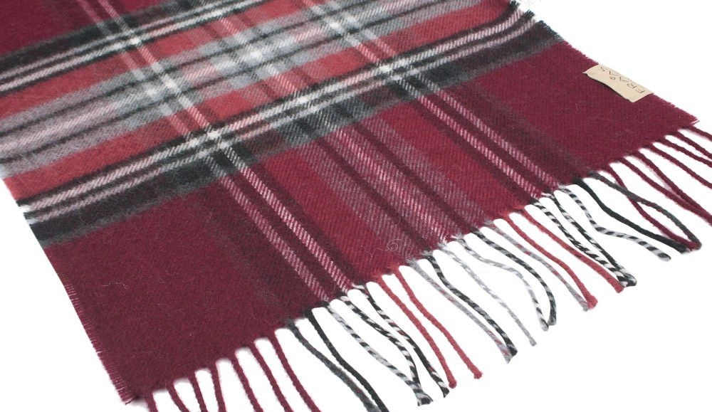 Wełniany Szalik Męski - V. Fraas - Kratka, Jasne Bordo