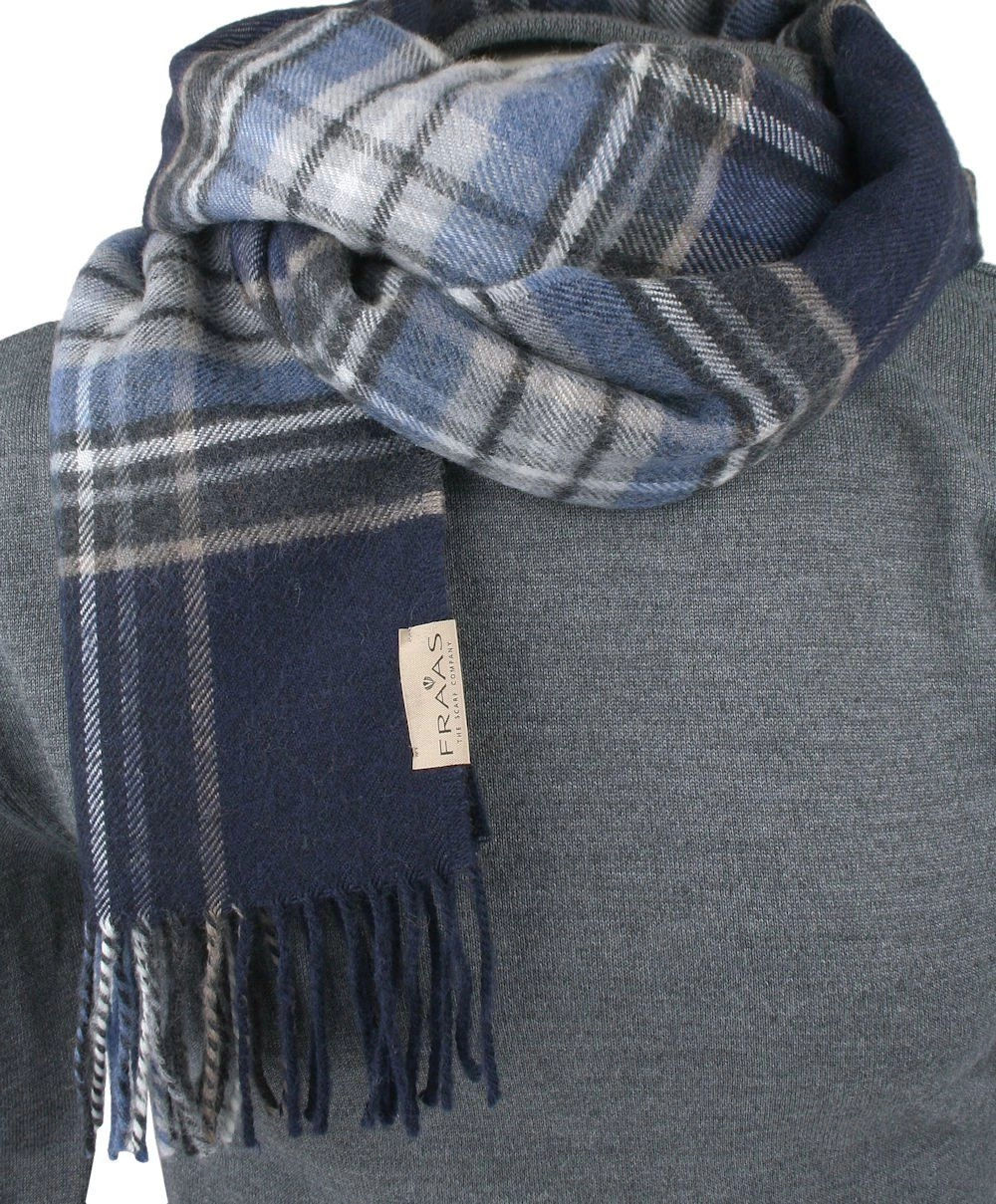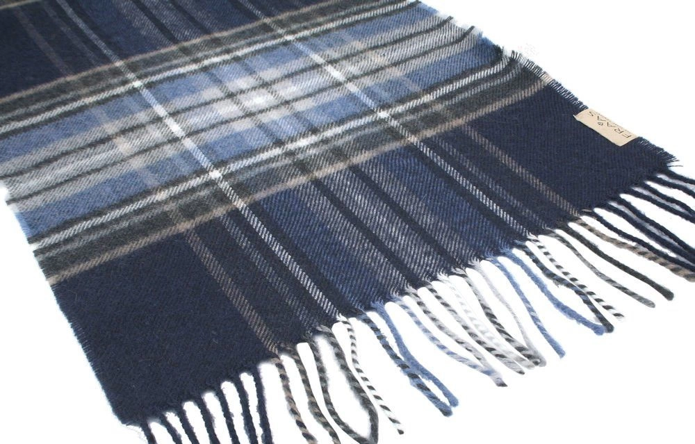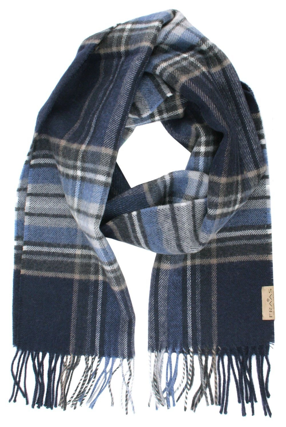 Wełniany Szalik Męski - V. Fraas - Niebieski i Granat, Kratka
