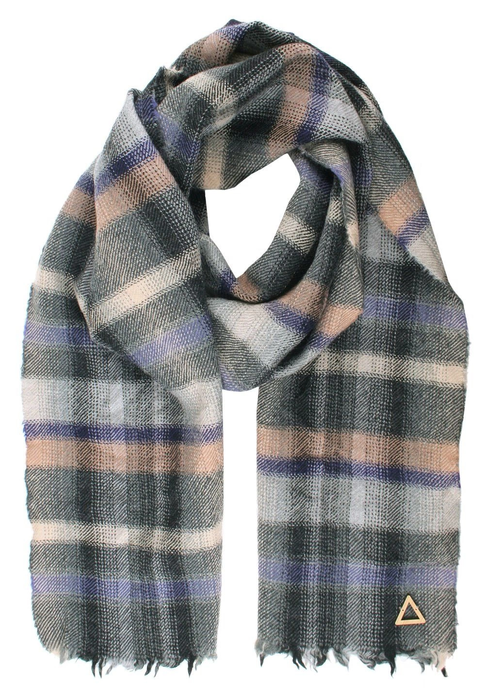 Wełniany Szalik Męski - V. Fraas - Popielata Kratka, Fioletowy Akcent