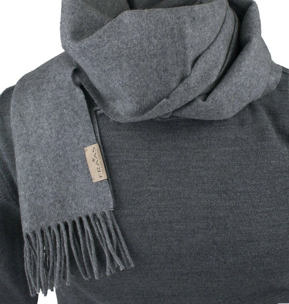 Zimowy szalik znanej niemieckiej firmy V.Fraas istniejącej na rynku już prawie 130 lat. Szaliki nie tylko chronią szyję przed zimnem, są też doskonałym urozmaiceniem męskiej garderoby. Zachowane w stonowanej kolorystyce. Pasują zarówno do eleganckiego, jak i typowo miejskiego, luźnego stroju. Wymiary szalika (w cm) – długość (z frędzlami): ok. 180 / szerokość: ok. 30 (+/- 5 cm). Materiał: 100% czysta, żywa wełna (ang. pure new wool).