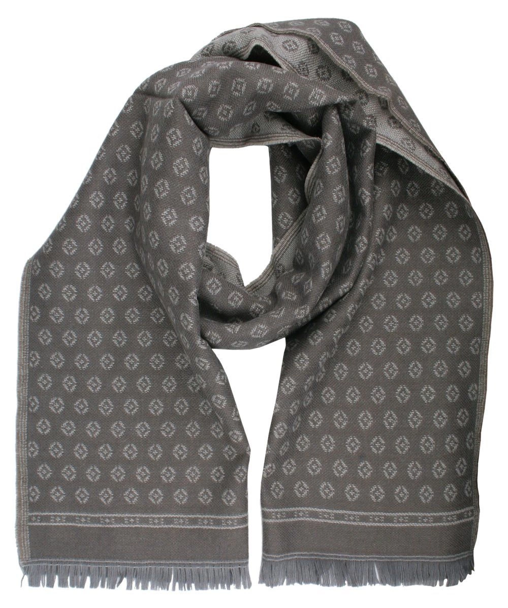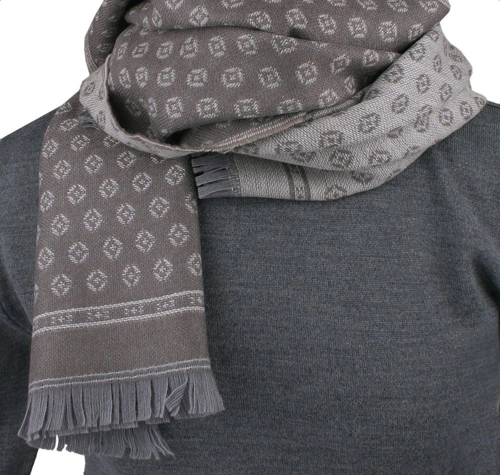 Wełniany Szalik Męski - V. Fraas - Taupe (Szarobrązowy), Drobny Wzór