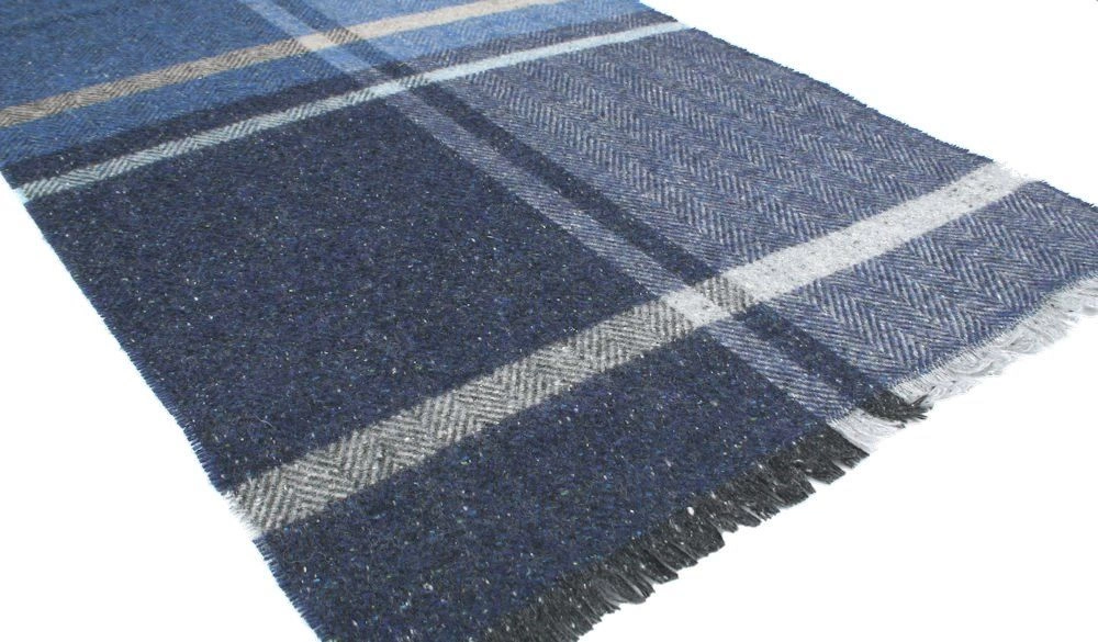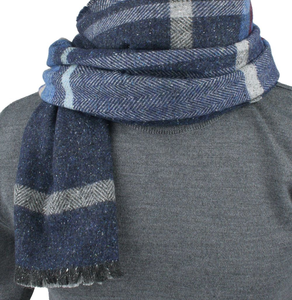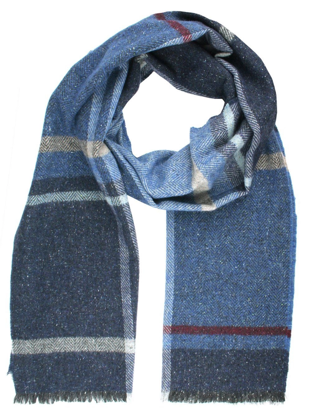 Wełniany Szalik Męski z Jedwabiem - V. Fraas - Odcienie Niebieskiego