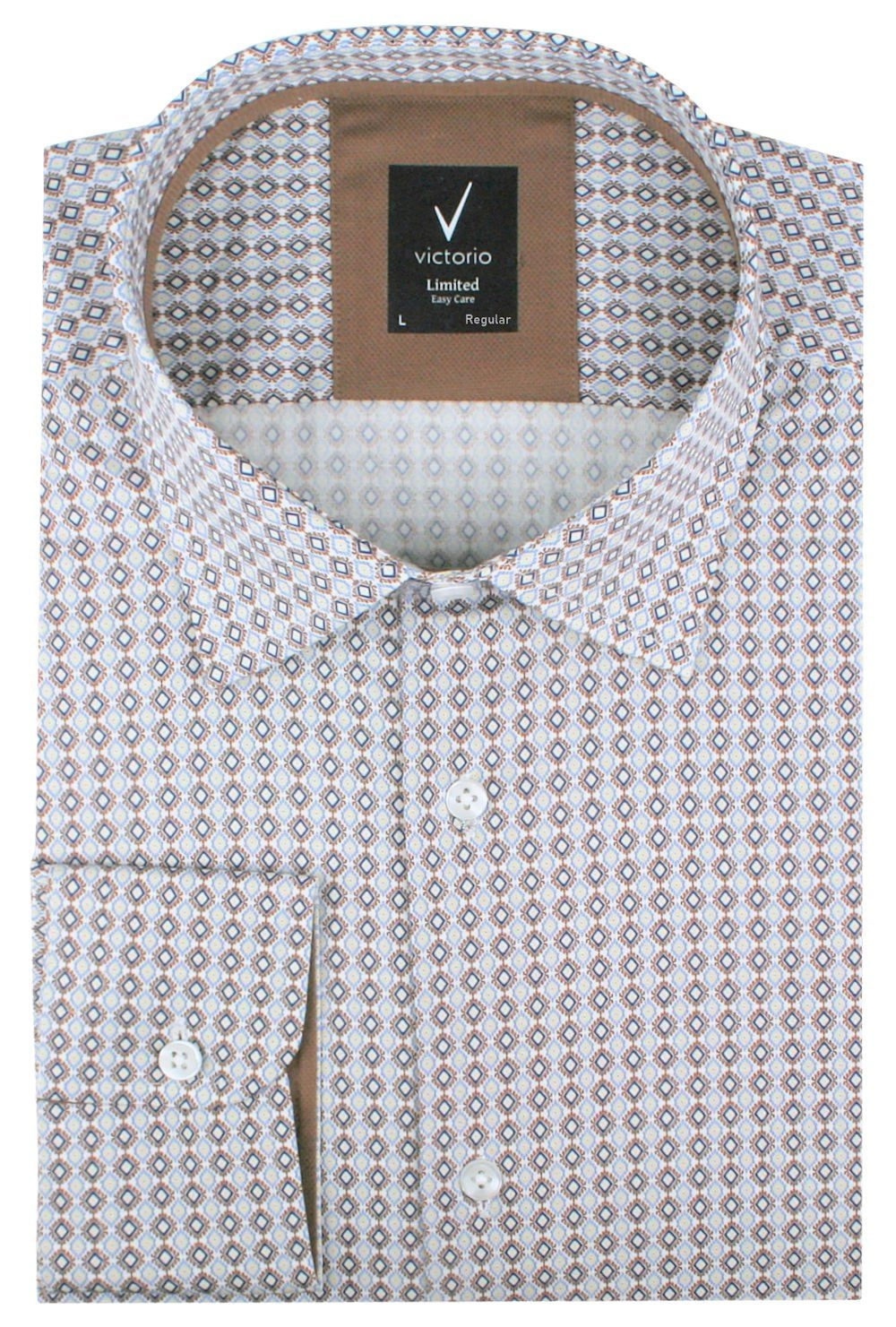 Wizytowa Koszula Bawełniana, Męska (Regular) - Victorio - Brązowo-Niebieski Drobny Wzór
