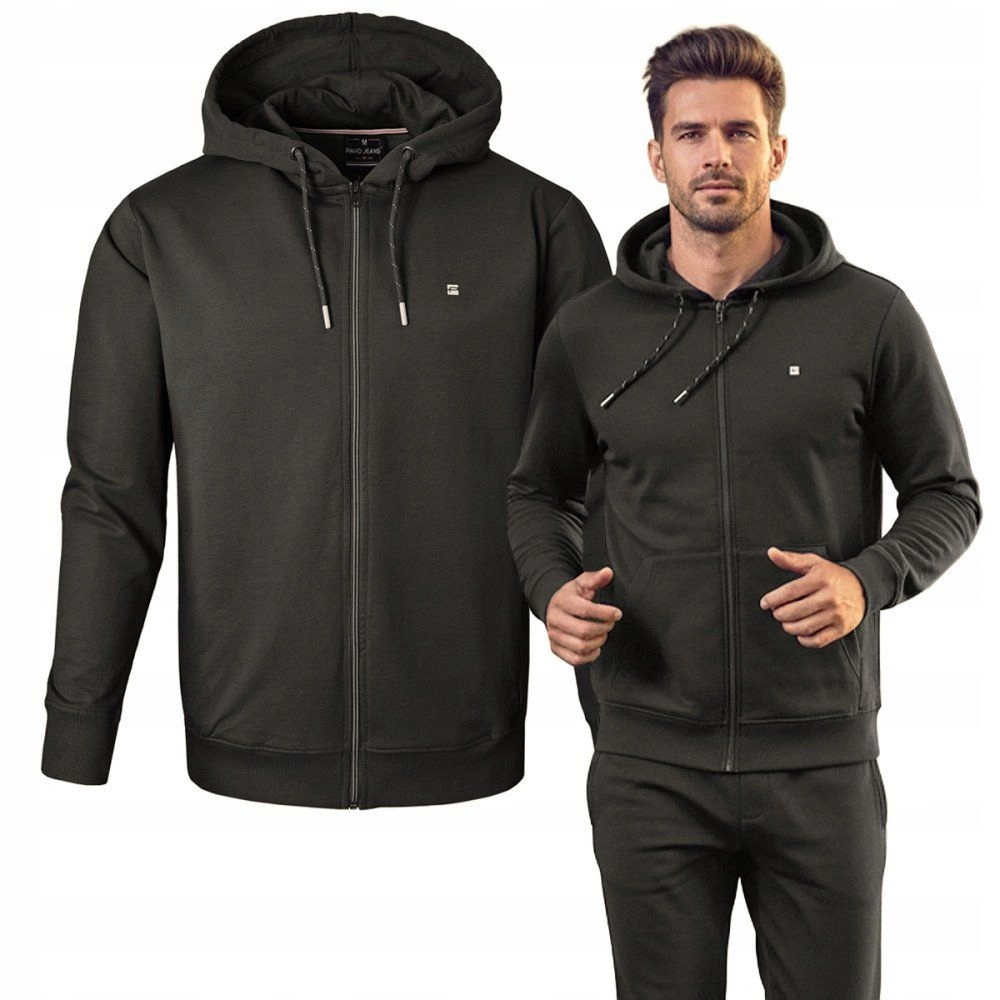 Klasyczna BLUZA męska z kapturem (rozpinana na zamek) marki Pako Jeans. Wykonana z wysokiej jakości bawełny dla lepszego komfortu noszenia. Dół bluzy oraz rękawy zakończone są ściągaczami. Produkt jest praktyczny. Dobrze wpisze się w niezobowiązującą, weekendową stylizację.
