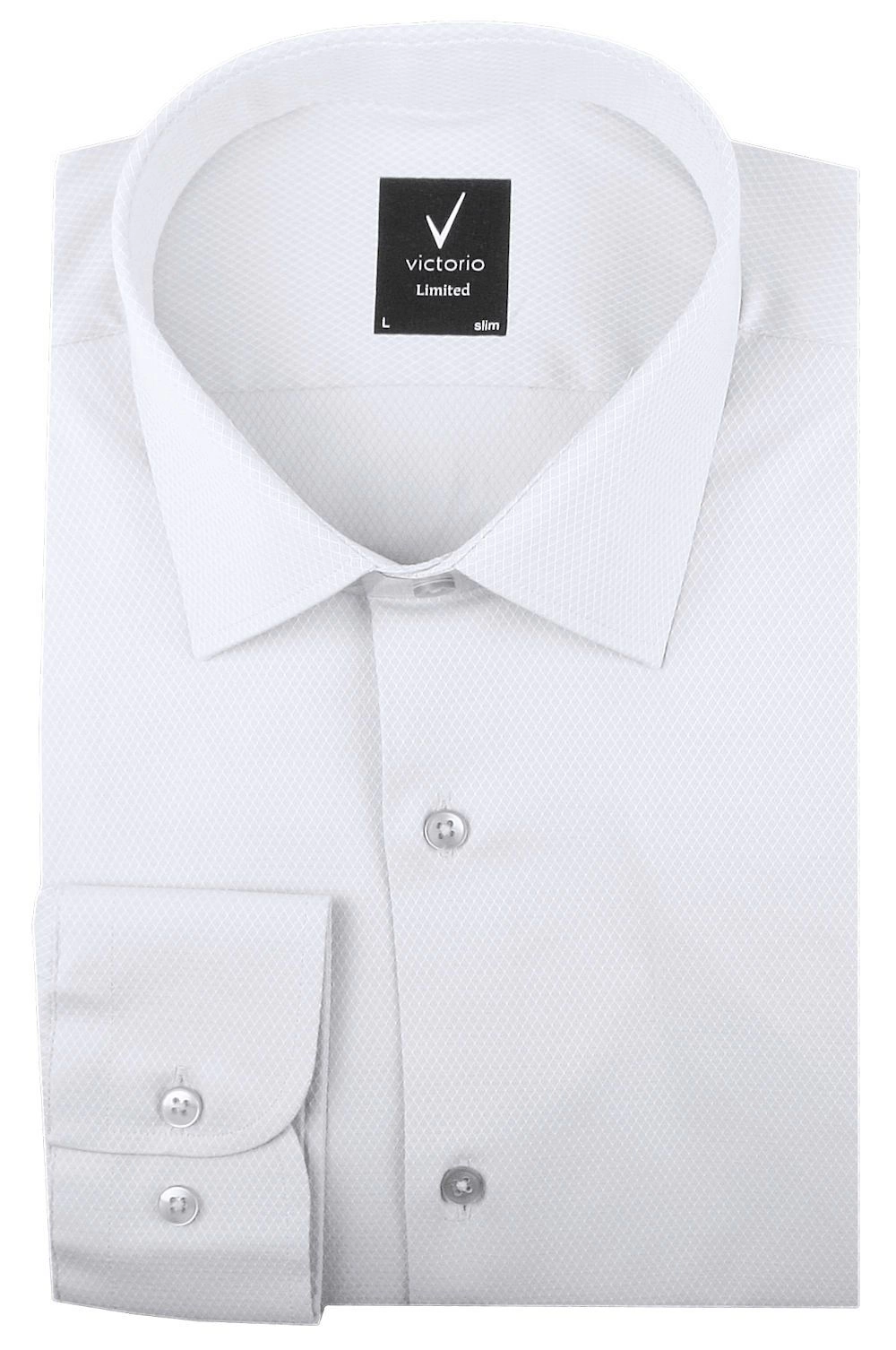 Wyszczuplona, Elegancka Koszula Męska - Victorio - Biała